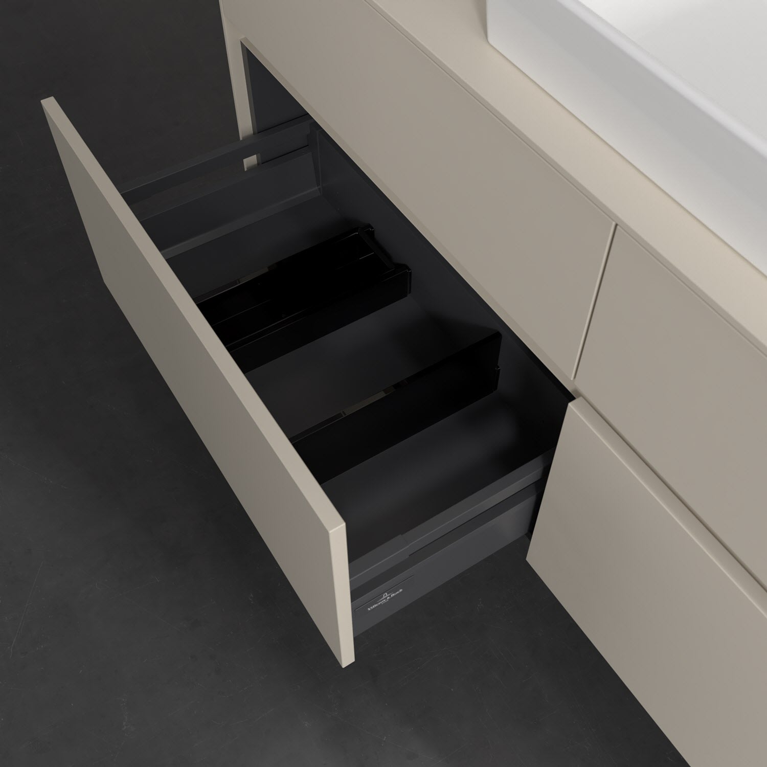 - kein Umfallen oder Verrutschen von Pflegeprodukten in den Schubladen dank rutschhemmendem Boden