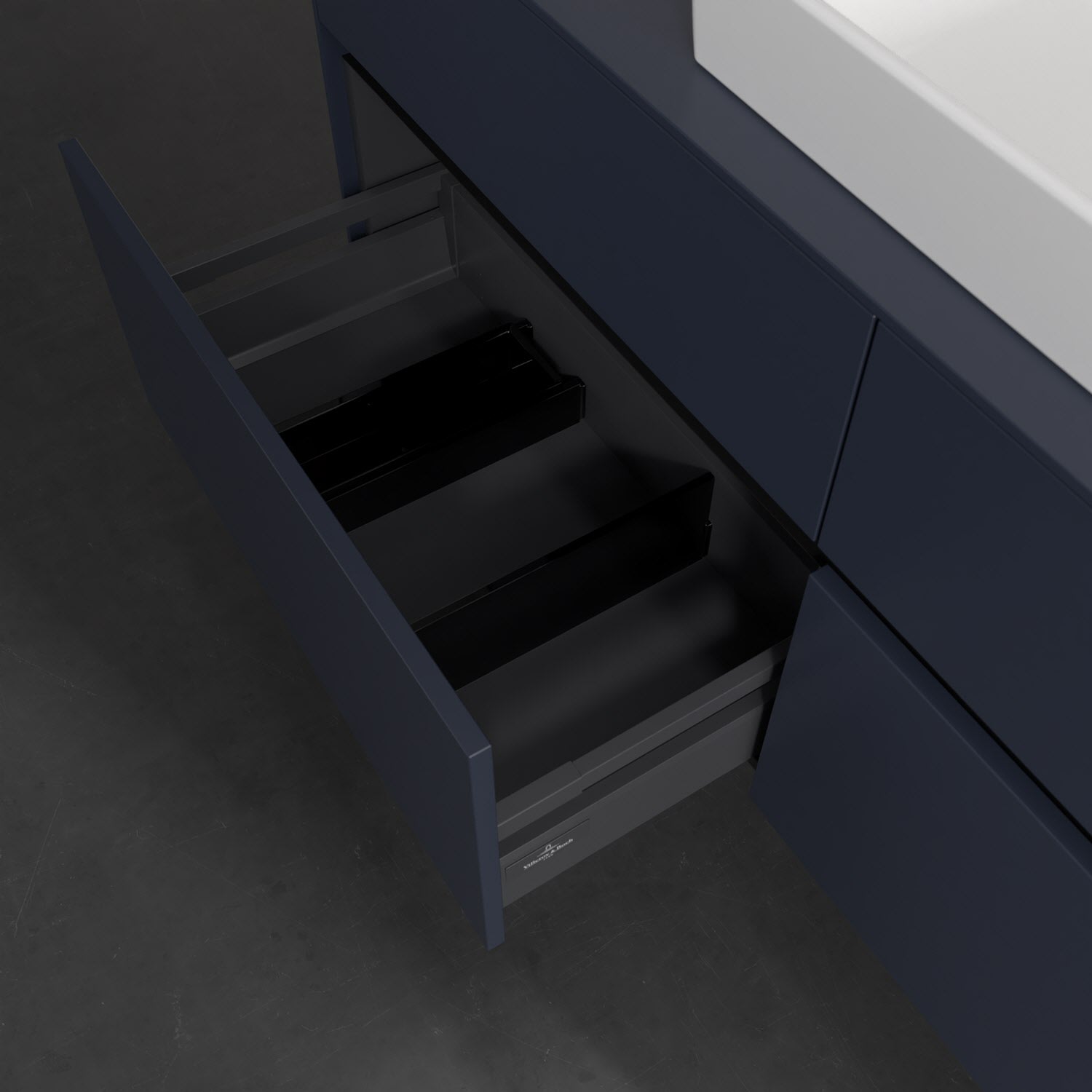 - kein Umfallen oder Verrutschen von Pflegeprodukten in den Schubladen dank rutschhemmendem Boden