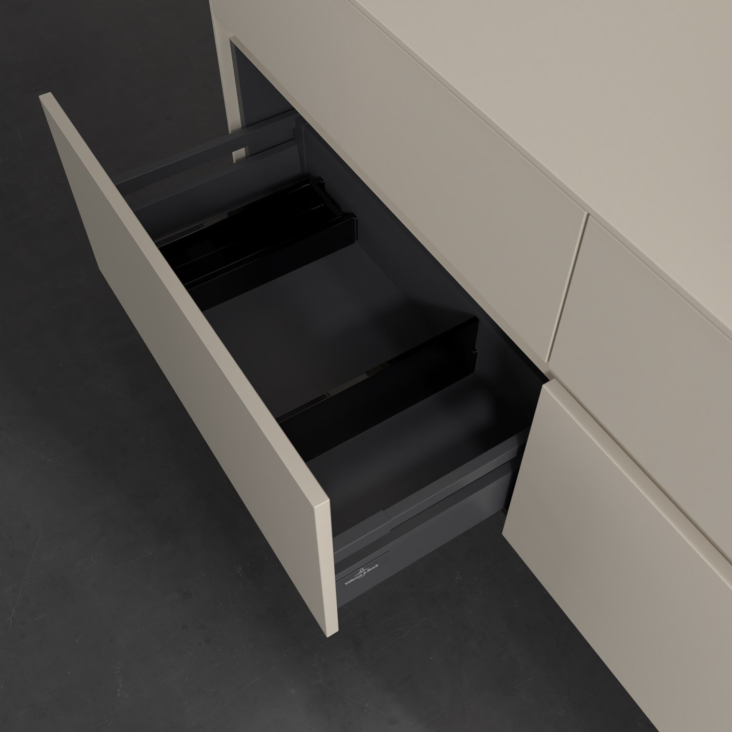 - kein Umfallen oder Verrutschen von Pflegeprodukten in den Schubladen dank rutschhemmendem Boden