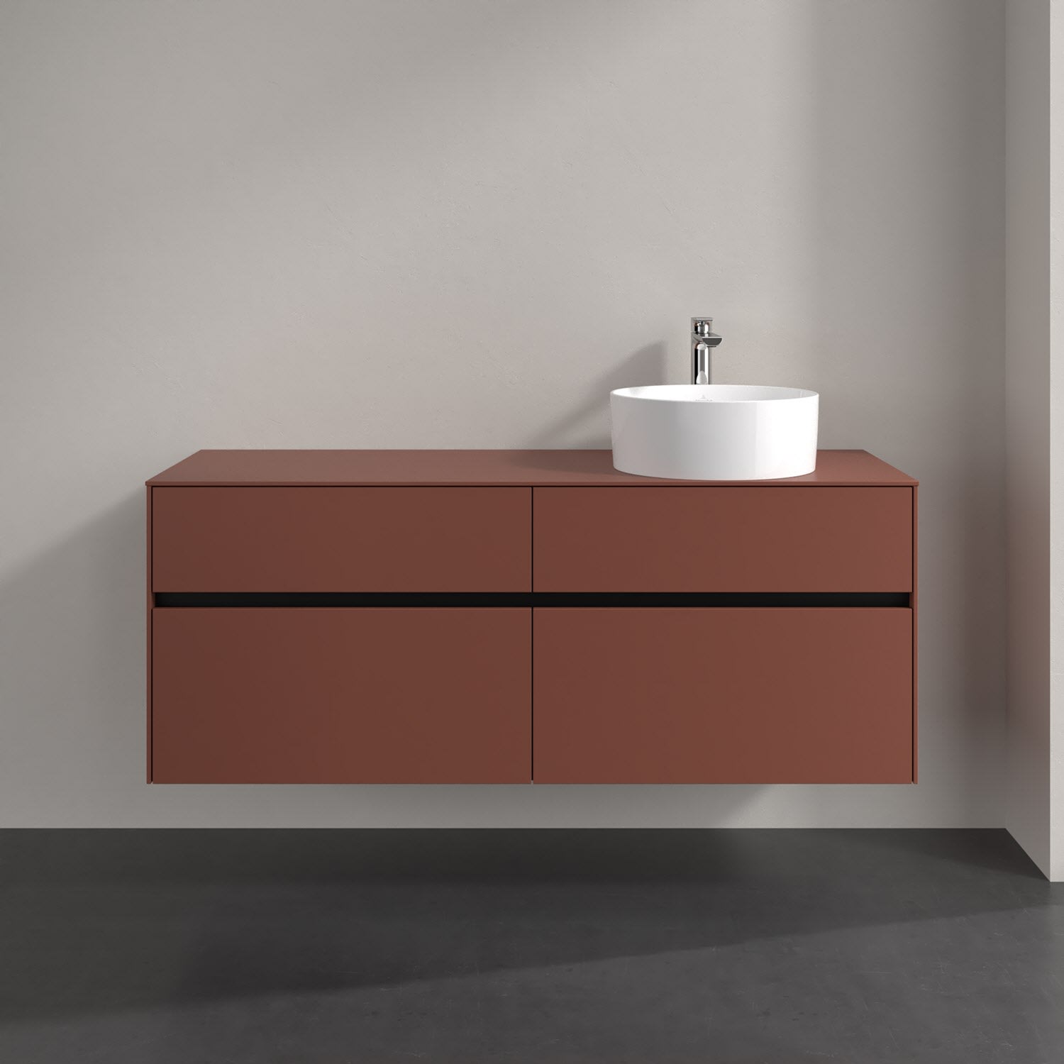 Stauraumwunder im zeitgemäßen Design: Der Villeroy & Boch Waschbeckenunterschrank aus der Collaro Kollektion eignet sich besonders für Familienbäder und bietet genau den Platz, der dort benötigt wird. Stimmungsvolles Highlight der schlichten, modernen Front ist die integrierte Griffmulde mit stufenlos einstellbarer LED-Beleuchtung. Steuern lässt sie sich über einen Touch-Sensor seitlich am Unterschrank. Im Inneren bietet das Möbelstück mit vier Auszügen erstaunlich viel Komfort – ermöglicht durch großzügiges Platzangebot und den integrierten Antirutschboden. Variabel setzbare Glasabtrennungen und mitgelieferte Accessory Boxen sorgen für den nötigen Überblick. Dank SoftClosing und Selbsteinzug lassen sich die Auszüge nach der Nutzung lautlos schließen. Die Front ist mit einer hochwertigen Lackierung versehen, deren Anti-Fingerprint-Oberfläche unschönen Fingerabdrücken vorbeugt.