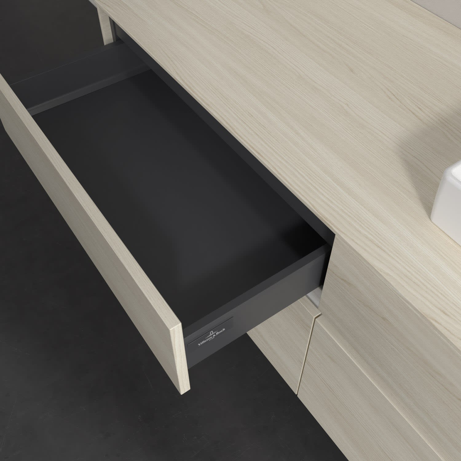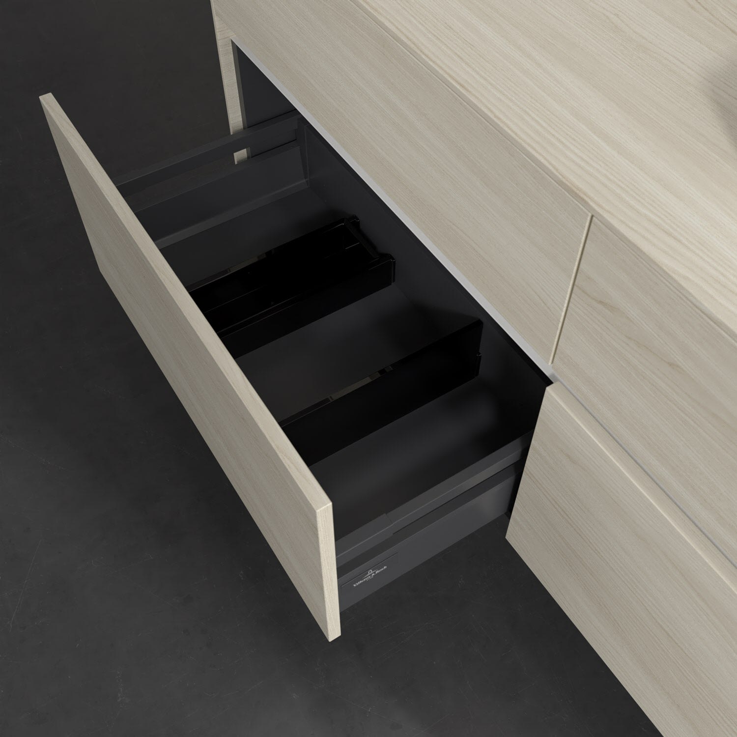 - kein Umfallen oder Verrutschen von Pflegeprodukten in den Schubladen dank rutschhemmendem Boden