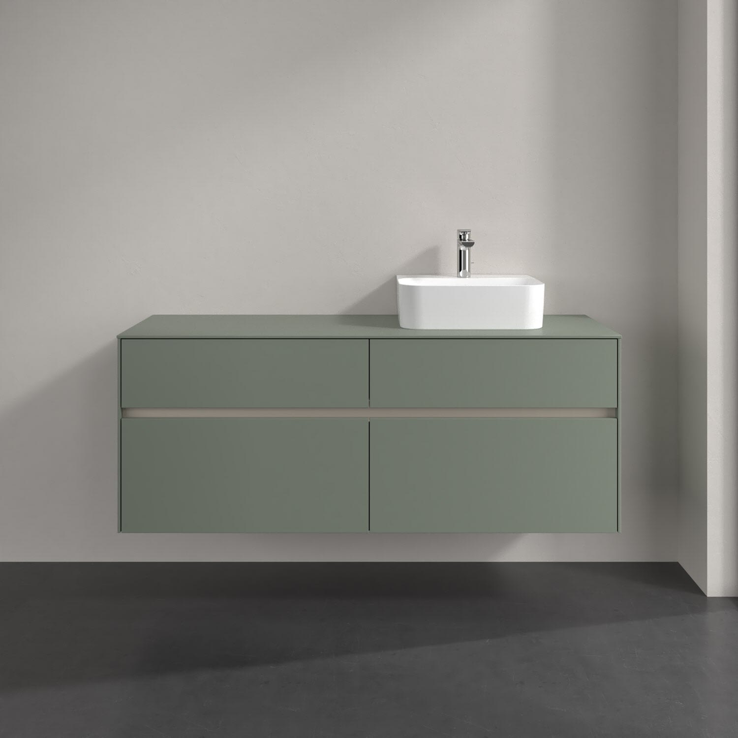 Stauraumwunder im zeitgemäßen Design: Der Villeroy & Boch Waschbeckenunterschrank aus der Collaro Kollektion eignet sich besonders für Familienbäder und bietet genau den Platz, der dort benötigt wird. Stimmungsvolles Highlight der schlichten, modernen Front ist die integrierte Griffmulde mit stufenlos einstellbarer LED-Beleuchtung. Im Inneren bietet das Möbelstück mit vier Auszügen erstaunlich viel Komfort – ermöglicht durch großzügiges Platzangebot und den integrierten Antirutschboden. Variabel setzbare Glasabtrennungen und mitgelieferte Accessory Boxen sorgen für den nötigen Überblick. Dank SoftClosing und Selbsteinzug lassen sich die Auszüge nach der Nutzung lautlos schließen. Die Front ist mit einer hochwertigen Lackierung versehen, deren Anti-Fingerprint-Oberfläche unschönen Fingerabdrücken vorbeugt.