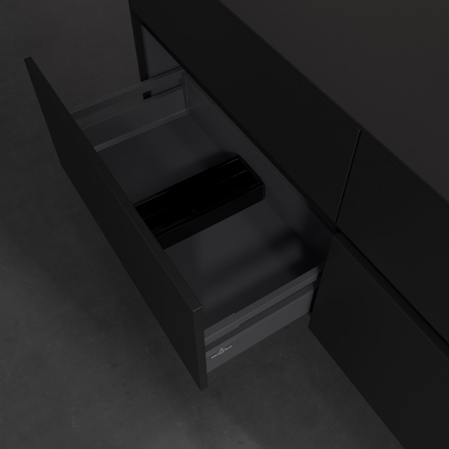 Stauraumwunder im zeitgemäßen Design: Der Villeroy & Boch Waschbeckenunterschrank aus der Collaro Kollektion eignet sich besonders für Familienbäder und bietet genau den Platz, der dort benötigt wird. Eine integrierte Griffleiste sorgt für eine schlichte, moderne Front. Steuern lässt sich das Licht über einen Touch-Sensor seitlich am Unterschrank. Im Inneren bietet das Möbelstück mit vier Auszügen erstaunlich viel Komfort – ermöglicht durch großzügiges Platzangebot und den integrierten Antirutschboden. Variabel setzbare Glasabtrennungen und mitgelieferte Accessory Boxen sorgen für den nötigen Überblick. Dank SoftClosing und Selbsteinzug lassen sich die Auszüge nach der Nutzung lautlos schließen. Die Front ist mit einer hochwertigen Lackierung versehen, deren Anti-Fingerprint-Oberfläche unschönen Fingerabdrücken vorbeugt.