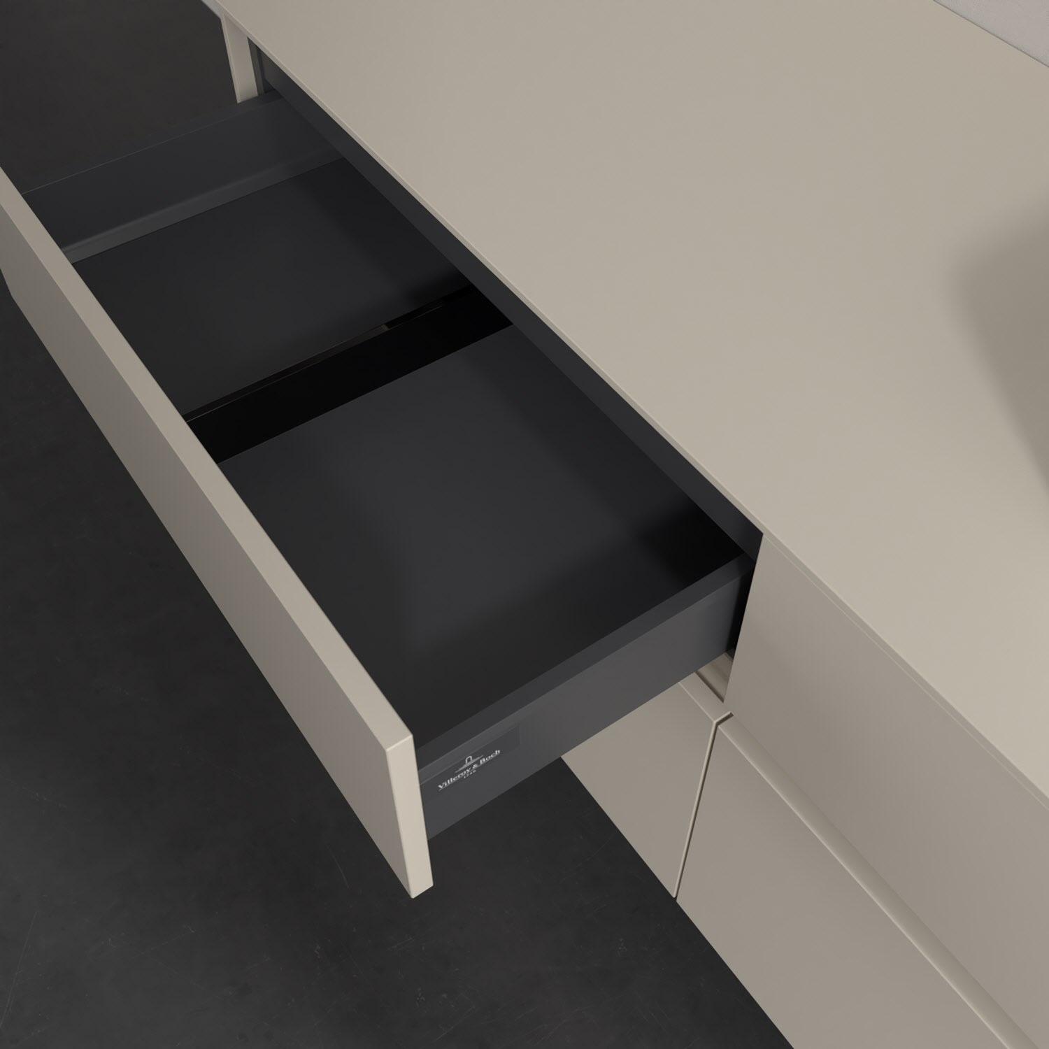Stauraumwunder im zeitgemäßen Design: Der Villeroy & Boch Waschbeckenunterschrank aus der Collaro Kollektion eignet sich besonders für Familienbäder und bietet genau den Platz, der dort benötigt wird. Eine integrierte Griffleiste sorgt für eine schlichte, moderne Front. Steuern lässt sich das Licht über einen Touch-Sensor seitlich am Unterschrank. Im Inneren bietet das Möbelstück mit vier Auszügen erstaunlich viel Komfort – ermöglicht durch großzügiges Platzangebot und den integrierten Antirutschboden. Variabel setzbare Glasabtrennungen und mitgelieferte Accessory Boxen sorgen für den nötigen Überblick. Dank SoftClosing und Selbsteinzug lassen sich die Auszüge nach der Nutzung lautlos schließen. Die Front ist mit einer hochwertigen Lackierung versehen, deren Anti-Fingerprint-Oberfläche unschönen Fingerabdrücken vorbeugt.