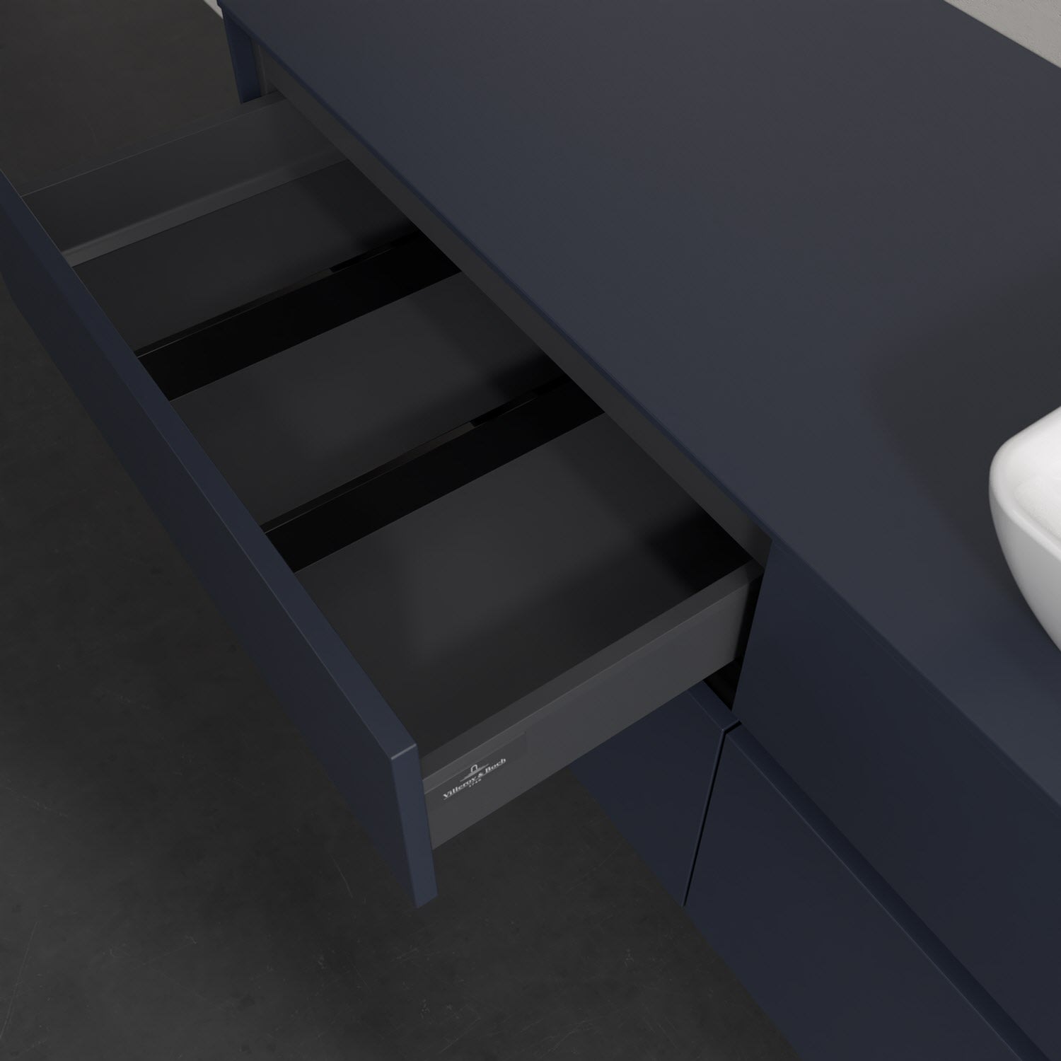 Stauraumwunder im zeitgemäßen Design: Der Villeroy & Boch Waschbeckenunterschrank aus der Collaro Kollektion eignet sich besonders für Familienbäder und bietet genau den Platz, der dort benötigt wird. Eine integrierte Griffleiste sorgt für eine schlichte, moderne Front. Steuern lässt sich das Licht über einen Touch-Sensor seitlich am Unterschrank. Im Inneren bietet das Möbelstück mit vier Auszügen erstaunlich viel Komfort – ermöglicht durch großzügiges Platzangebot und den integrierten Antirutschboden. Variabel setzbare Glasabtrennungen und mitgelieferte Accessory Boxen sorgen für den nötigen Überblick. Dank SoftClosing und Selbsteinzug lassen sich die Auszüge nach der Nutzung lautlos schließen. Die Front ist mit einer hochwertigen Lackierung versehen, deren Anti-Fingerprint-Oberfläche unschönen Fingerabdrücken vorbeugt.