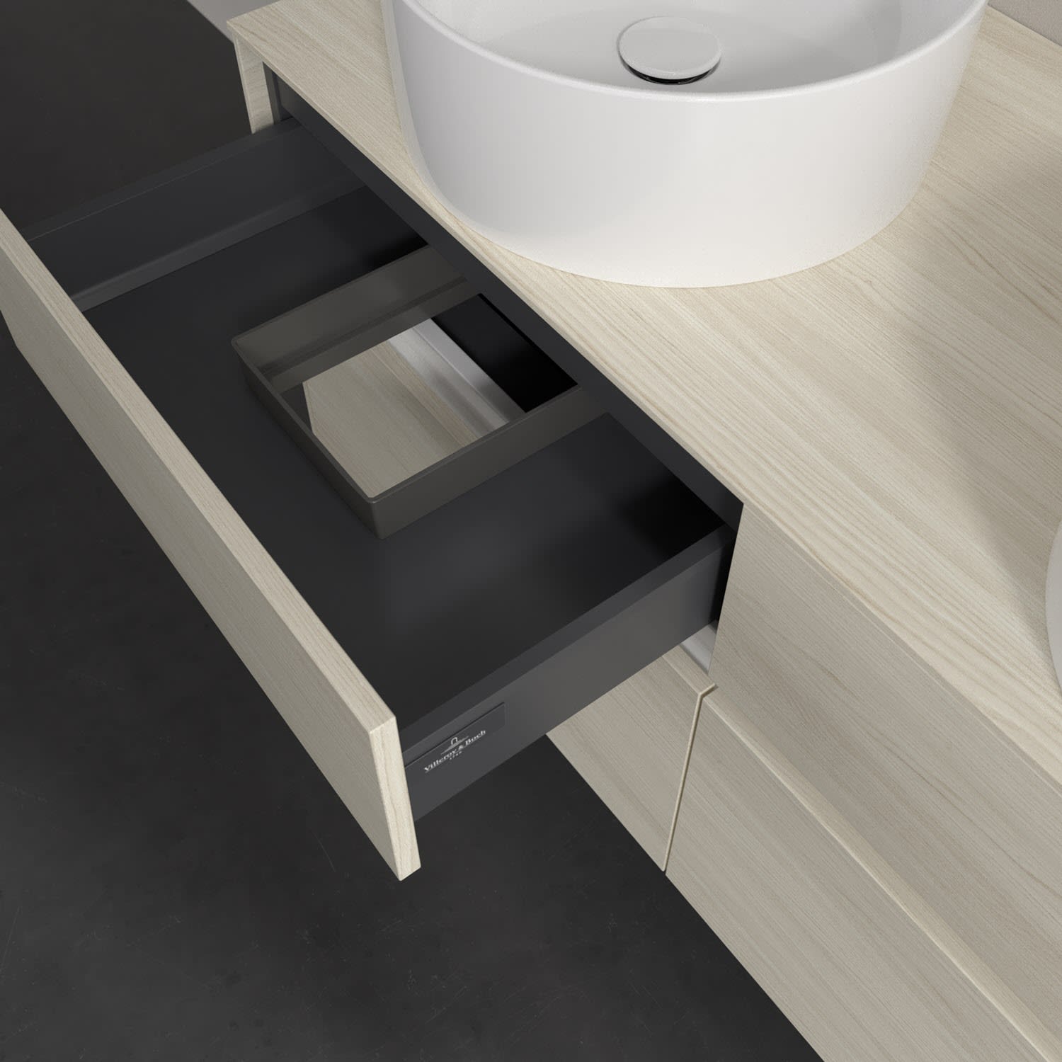 - kein Umfallen oder Verrutschen von Pflegeprodukten in den Schubladen dank rutschhemmendem Boden