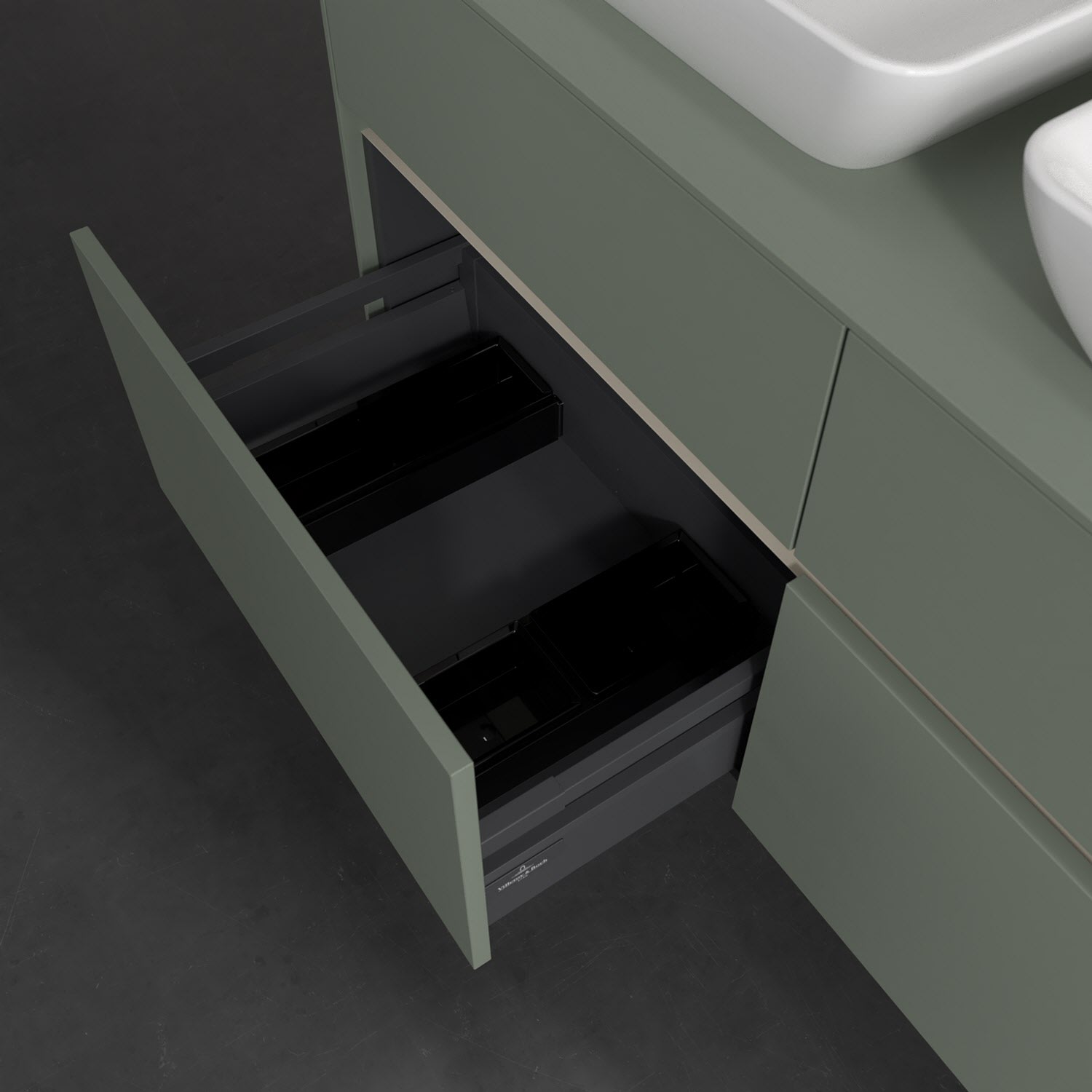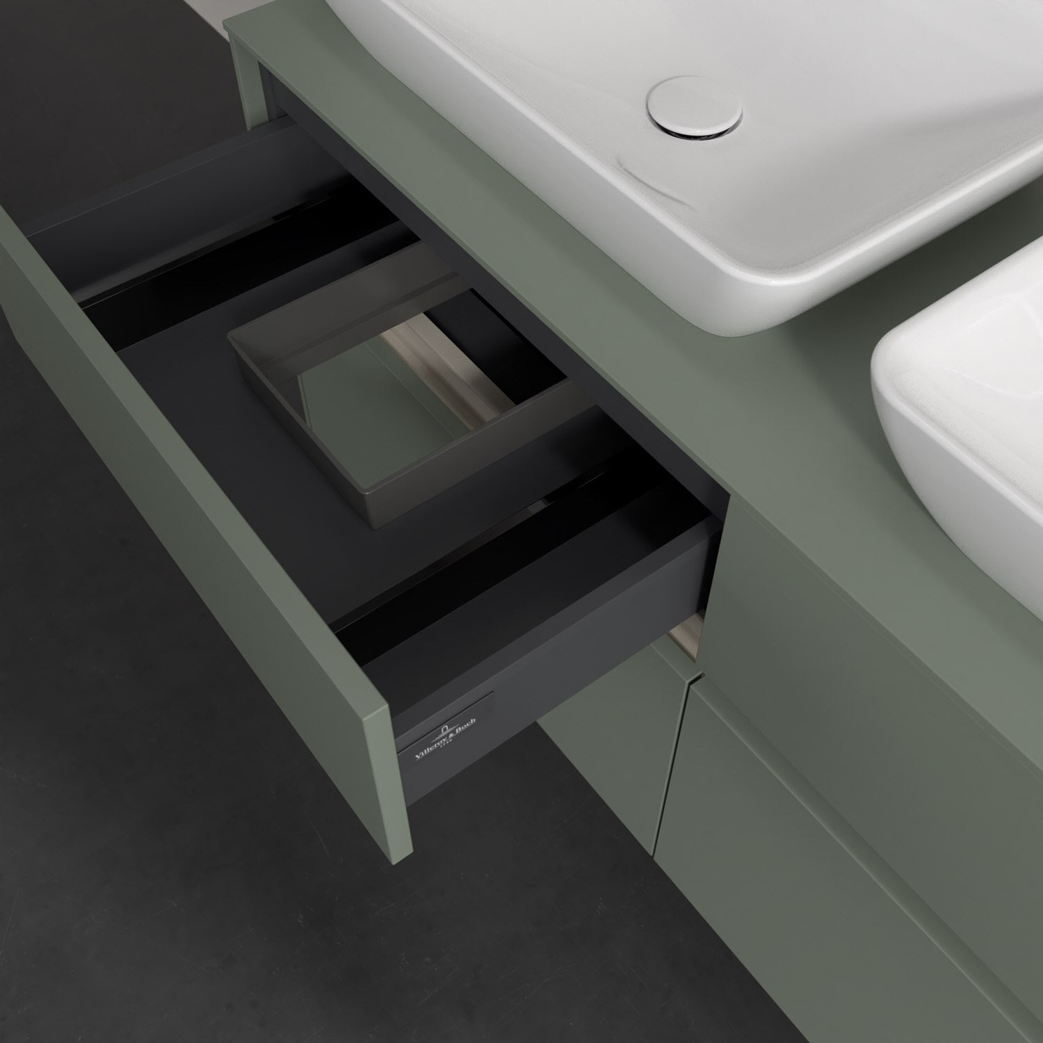 Stauraumwunder im zeitgemäßen Design: Der Villeroy & Boch Waschbeckenunterschrank aus der Collaro Kollektion eignet sich besonders für Familienbäder und bietet genau den Platz, der dort benötigt wird. Stimmungsvolles Highlight der schlichten, modernen Front ist die integrierte Griffmulde mit stufenlos einstellbarer LED-Beleuchtung. Im Inneren bietet das Möbelstück mit vier Auszügen erstaunlich viel Komfort – ermöglicht durch großzügiges Platzangebot und den integrierten Antirutschboden. Variabel setzbare Glasabtrennungen und mitgelieferte Accessory Boxen sorgen für den nötigen Überblick. Dank SoftClosing und Selbsteinzug lassen sich die Auszüge nach der Nutzung lautlos schließen. Die Front ist mit einer hochwertigen Lackierung versehen, deren Anti-Fingerprint-Oberfläche unschönen Fingerabdrücken vorbeugt.