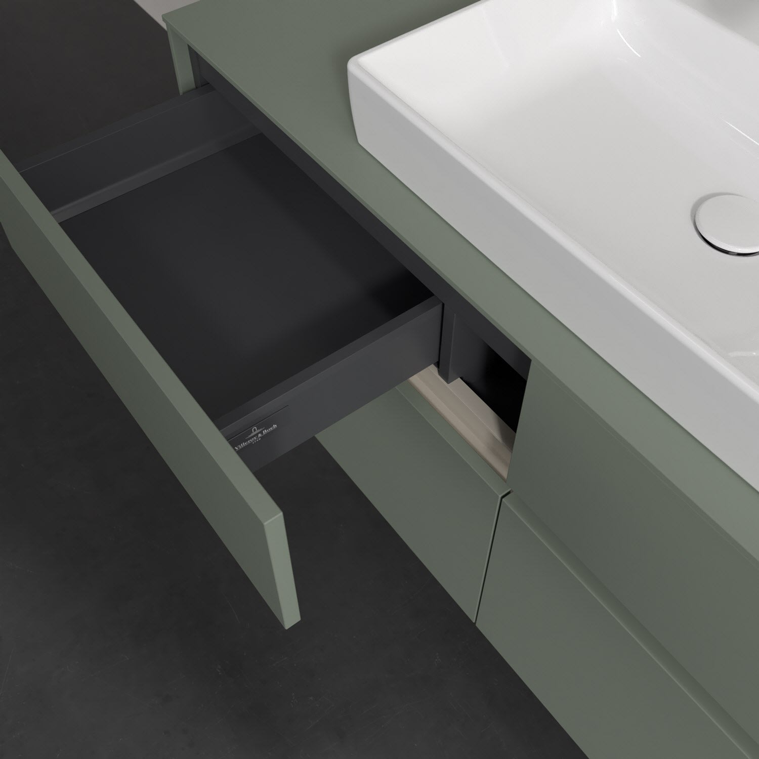 Stauraumwunder im zeitgemäßen Design: Der Villeroy & Boch Waschbeckenunterschrank aus der Collaro Kollektion eignet sich besonders für Familienbäder und bietet genau den Platz, der dort benötigt wird. Stimmungsvolles Highlight der schlichten, modernen Front ist die integrierte Griffmulde mit stufenlos einstellbarer LED-Beleuchtung. Im Inneren bietet das Möbelstück mit vier Auszügen erstaunlich viel Komfort – ermöglicht durch großzügiges Platzangebot und den integrierten Antirutschboden. Variabel setzbare Glasabtrennungen und mitgelieferte Accessory Boxen sorgen für den nötigen Überblick. Dank SoftClosing und Selbsteinzug lassen sich die Auszüge nach der Nutzung lautlos schließen. Die Front ist mit einer hochwertigen Lackierung versehen, deren Anti-Fingerprint-Oberfläche unschönen Fingerabdrücken vorbeugt.