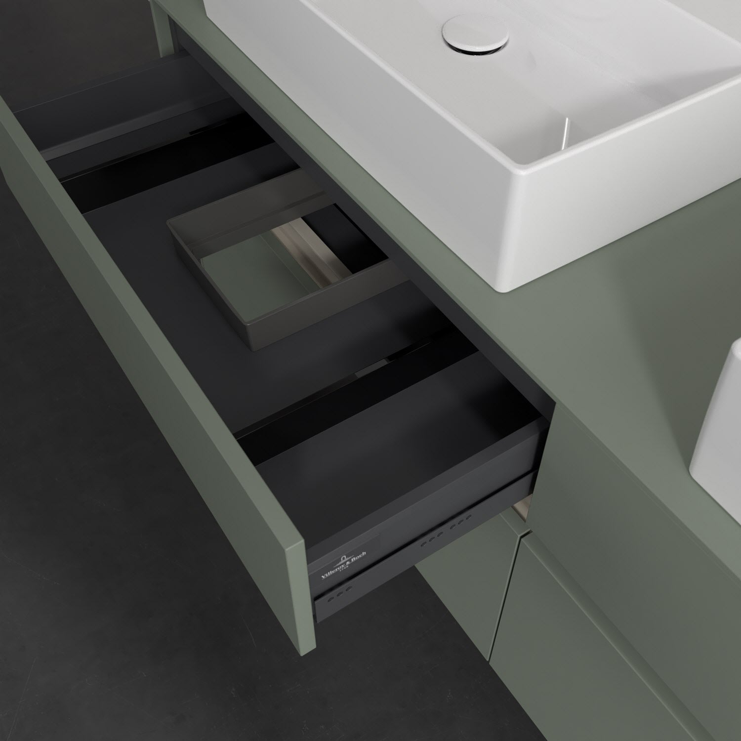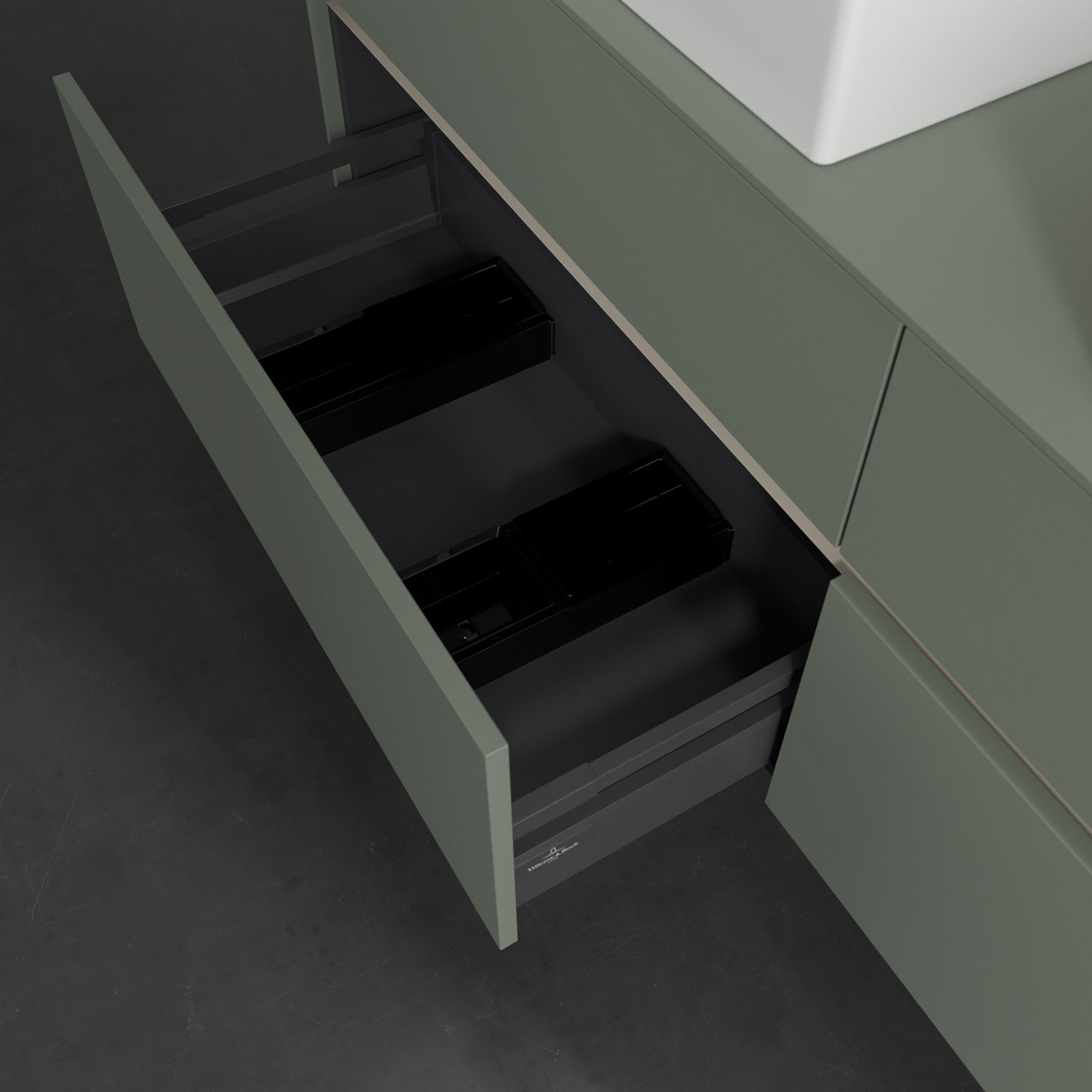 Stauraumwunder im zeitgemäßen Design: Der Villeroy & Boch Waschbeckenunterschrank aus der Collaro Kollektion eignet sich besonders für Familienbäder und bietet genau den Platz, der dort benötigt wird. Eine integrierte Griffleiste sorgt für eine schlichte, moderne Front. Steuern lässt sich das Licht über einen Touch-Sensor seitlich am Unterschrank. Im Inneren bietet das Möbelstück mit vier Auszügen erstaunlich viel Komfort – ermöglicht durch großzügiges Platzangebot und den integrierten Antirutschboden. Variabel setzbare Glasabtrennungen und mitgelieferte Accessory Boxen sorgen für den nötigen Überblick. Dank SoftClosing und Selbsteinzug lassen sich die Auszüge nach der Nutzung lautlos schließen. Die Front ist mit einer hochwertigen Lackierung versehen, deren Anti-Fingerprint-Oberfläche unschönen Fingerabdrücken vorbeugt.