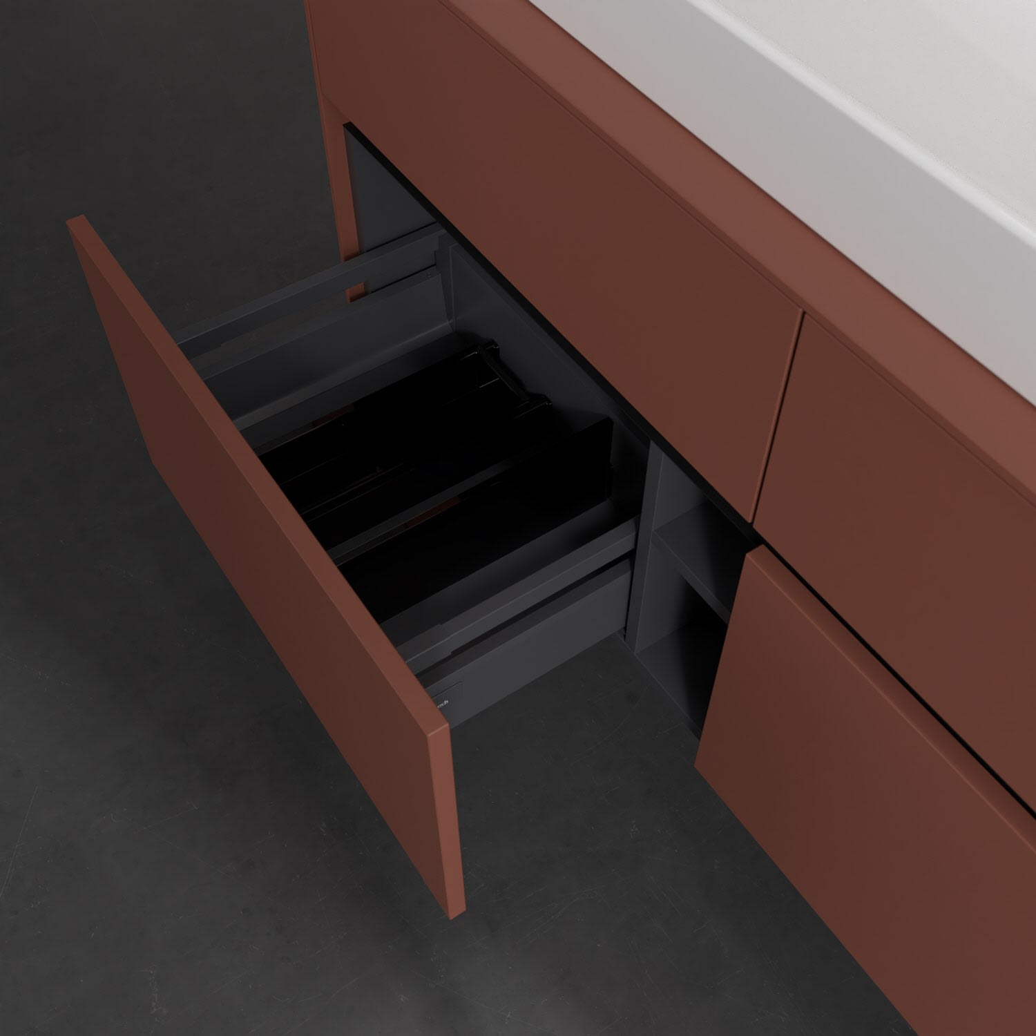 - kein Umfallen oder Verrutschen von Pflegeprodukten in den Schubladen dank rutschhemmendem Boden