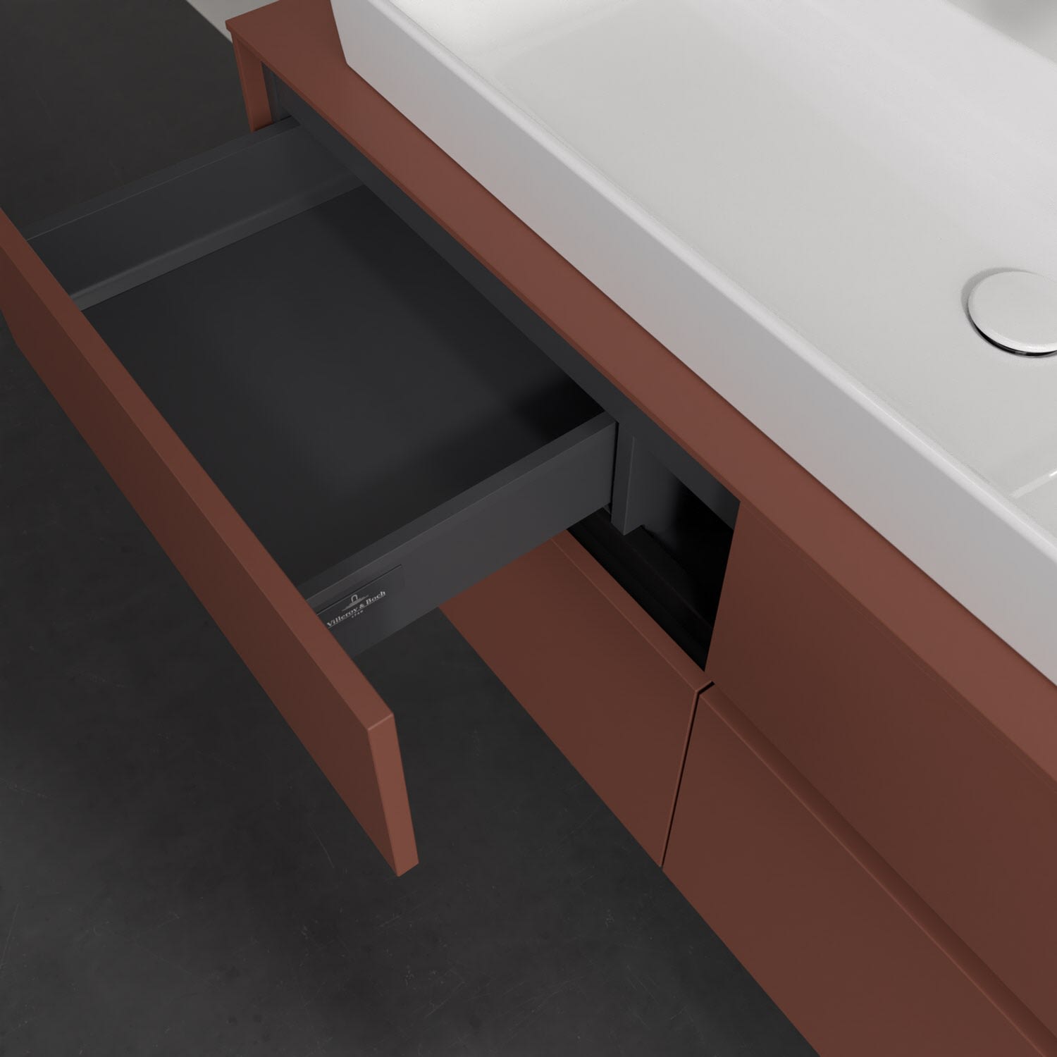Stauraumwunder im zeitgemäßen Design: Der Villeroy & Boch Waschbeckenunterschrank aus der Collaro Kollektion eignet sich besonders für Familienbäder und bietet genau den Platz, der dort benötigt wird. Stimmungsvolles Highlight der schlichten, modernen Front ist die integrierte Griffmulde mit stufenlos einstellbarer LED-Beleuchtung. Im Inneren bietet das Möbelstück mit vier Auszügen erstaunlich viel Komfort – ermöglicht durch großzügiges Platzangebot und den integrierten Antirutschboden. Variabel setzbare Glasabtrennungen und mitgelieferte Accessory Boxen sorgen für den nötigen Überblick. Dank SoftClosing und Selbsteinzug lassen sich die Auszüge nach der Nutzung lautlos schließen. Die Front ist mit einer hochwertigen Lackierung versehen, deren Anti-Fingerprint-Oberfläche unschönen Fingerabdrücken vorbeugt.