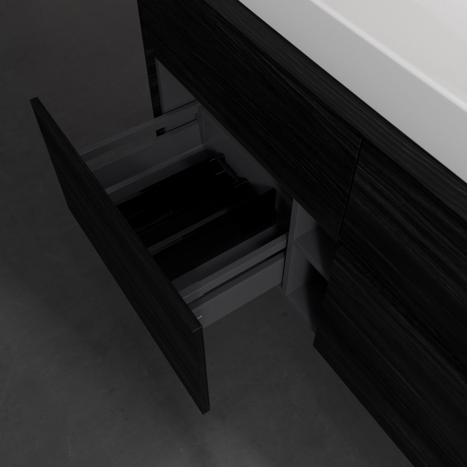 - kein Umfallen oder Verrutschen von Pflegeprodukten in den Schubladen dank rutschhemmendem Boden