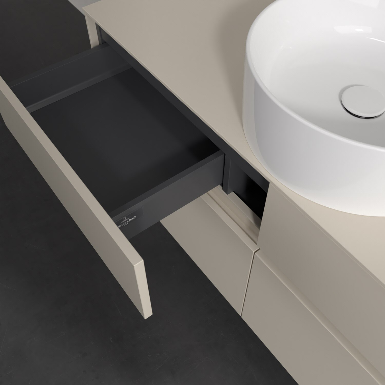 - kein Umfallen oder Verrutschen von Pflegeprodukten in den Schubladen dank rutschhemmendem Boden