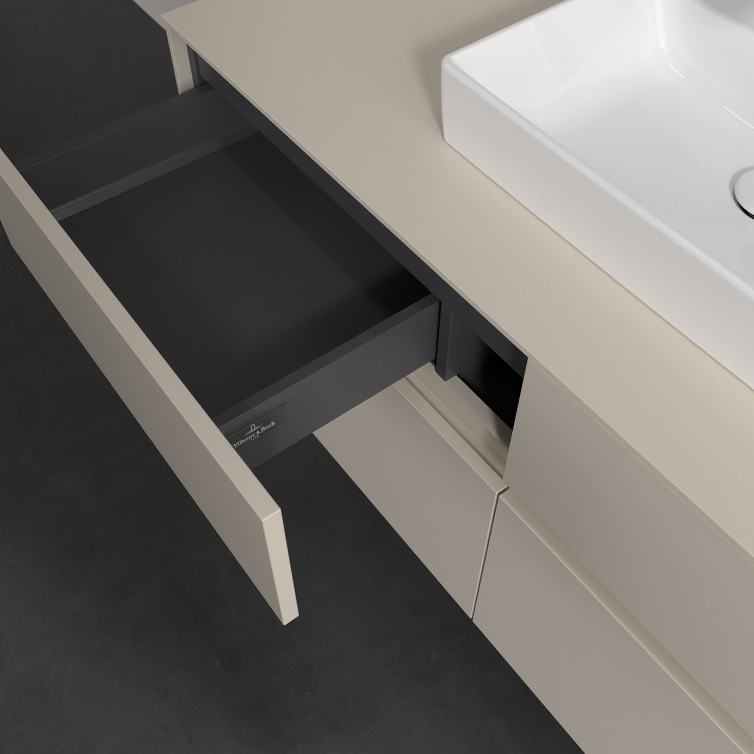 - kein Umfallen oder Verrutschen von Pflegeprodukten in den Schubladen dank rutschhemmendem Boden