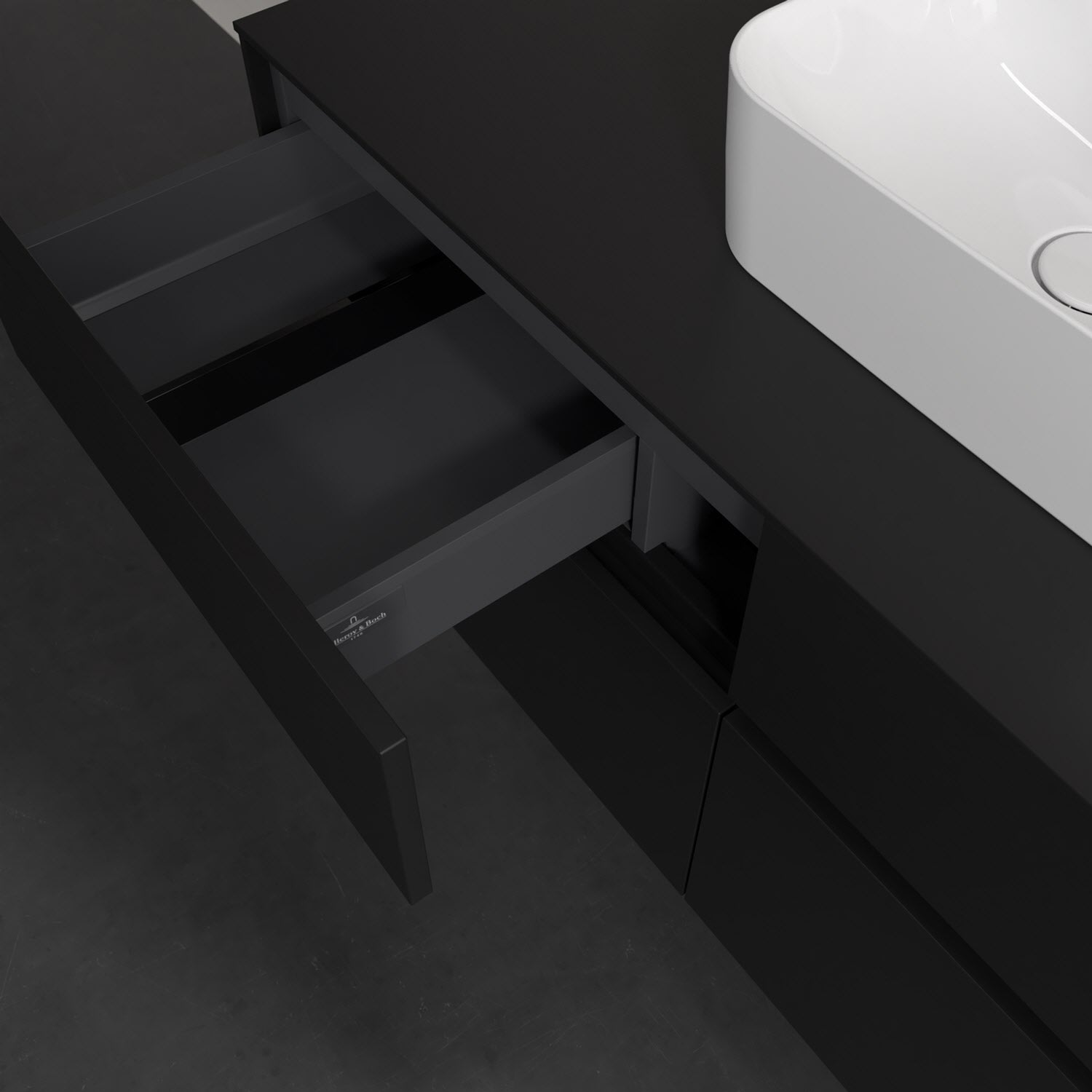 Stauraumwunder im zeitgemäßen Design: Der Villeroy & Boch Waschbeckenunterschrank aus der Collaro Kollektion eignet sich besonders für Familienbäder und bietet genau den Platz, der dort benötigt wird. Stimmungsvolles Highlight der schlichten, modernen Front ist die integrierte Griffmulde mit stufenlos einstellbarer LED-Beleuchtung. Im Inneren bietet das Möbelstück mit vier Auszügen erstaunlich viel Komfort – ermöglicht durch großzügiges Platzangebot und den integrierten Antirutschboden. Variabel setzbare Glasabtrennungen und mitgelieferte Accessory Boxen sorgen für den nötigen Überblick. Dank SoftClosing und Selbsteinzug lassen sich die Auszüge nach der Nutzung lautlos schließen. Die Front ist mit einer hochwertigen Lackierung versehen, deren Anti-Fingerprint-Oberfläche unschönen Fingerabdrücken vorbeugt.