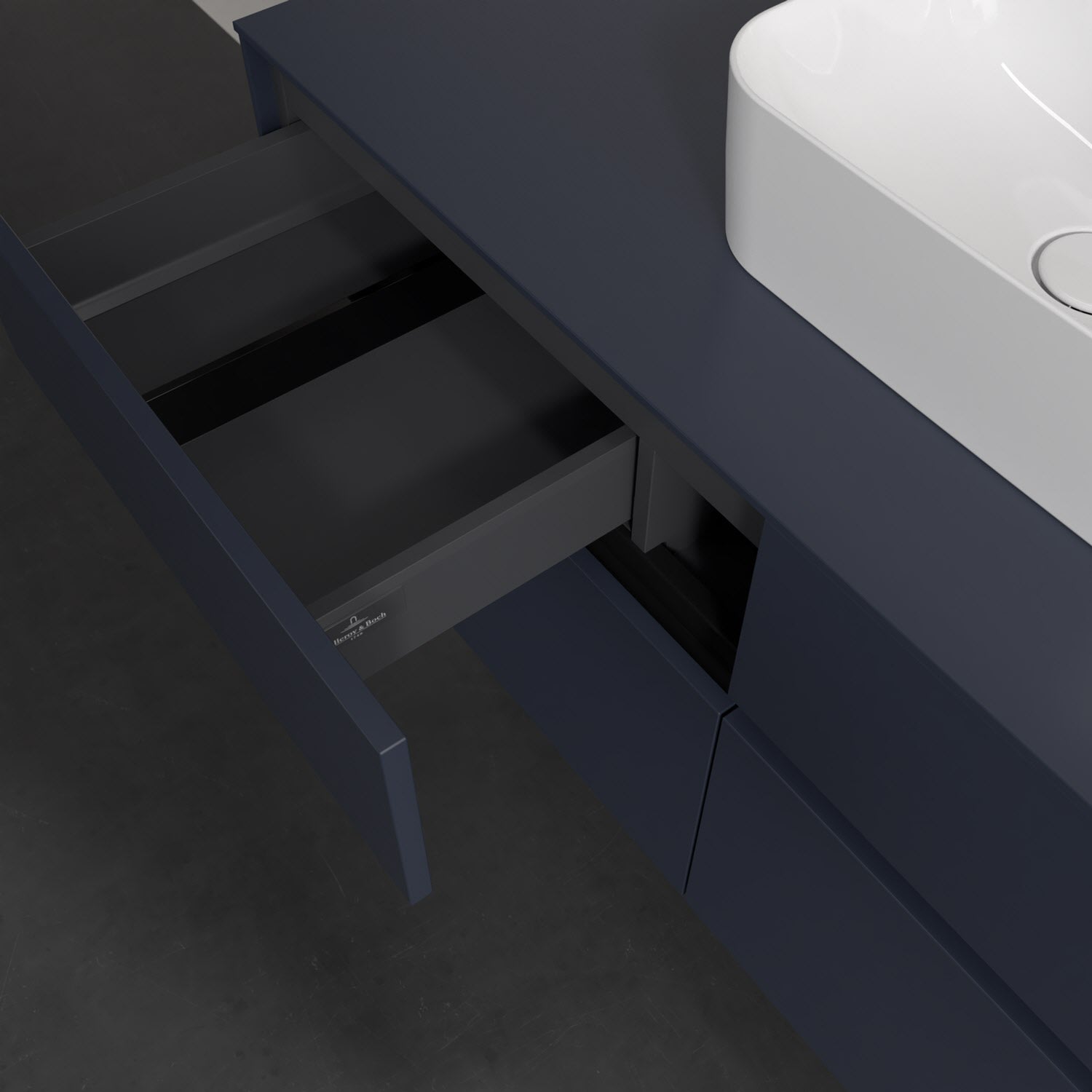 Stauraumwunder im zeitgemäßen Design: Der Villeroy & Boch Waschbeckenunterschrank aus der Collaro Kollektion eignet sich besonders für Familienbäder und bietet genau den Platz, der dort benötigt wird. Stimmungsvolles Highlight der schlichten, modernen Front ist die integrierte Griffmulde mit stufenlos einstellbarer LED-Beleuchtung. Im Inneren bietet das Möbelstück mit vier Auszügen erstaunlich viel Komfort – ermöglicht durch großzügiges Platzangebot und den integrierten Antirutschboden. Variabel setzbare Glasabtrennungen und mitgelieferte Accessory Boxen sorgen für den nötigen Überblick. Dank SoftClosing und Selbsteinzug lassen sich die Auszüge nach der Nutzung lautlos schließen. Die Front ist mit einer hochwertigen Lackierung versehen, deren Anti-Fingerprint-Oberfläche unschönen Fingerabdrücken vorbeugt.