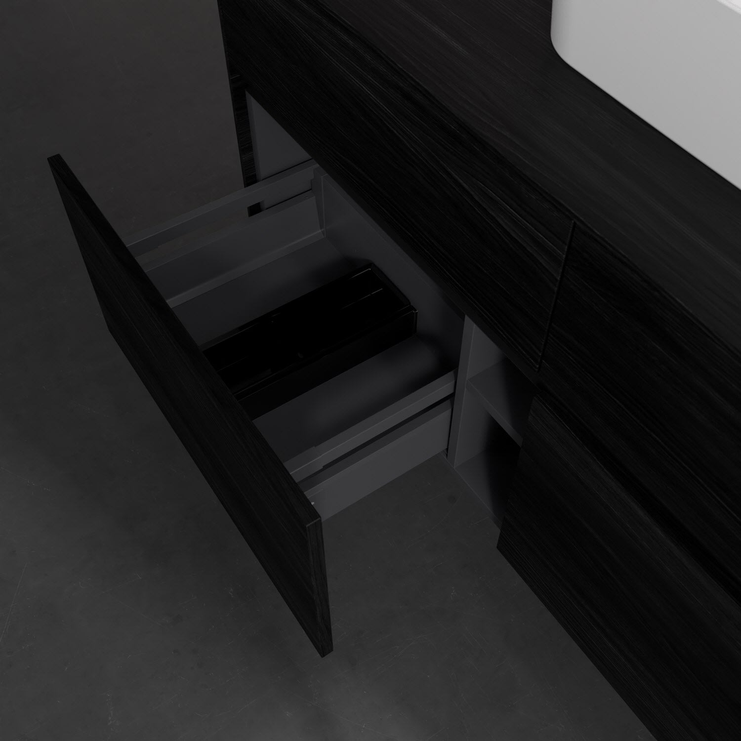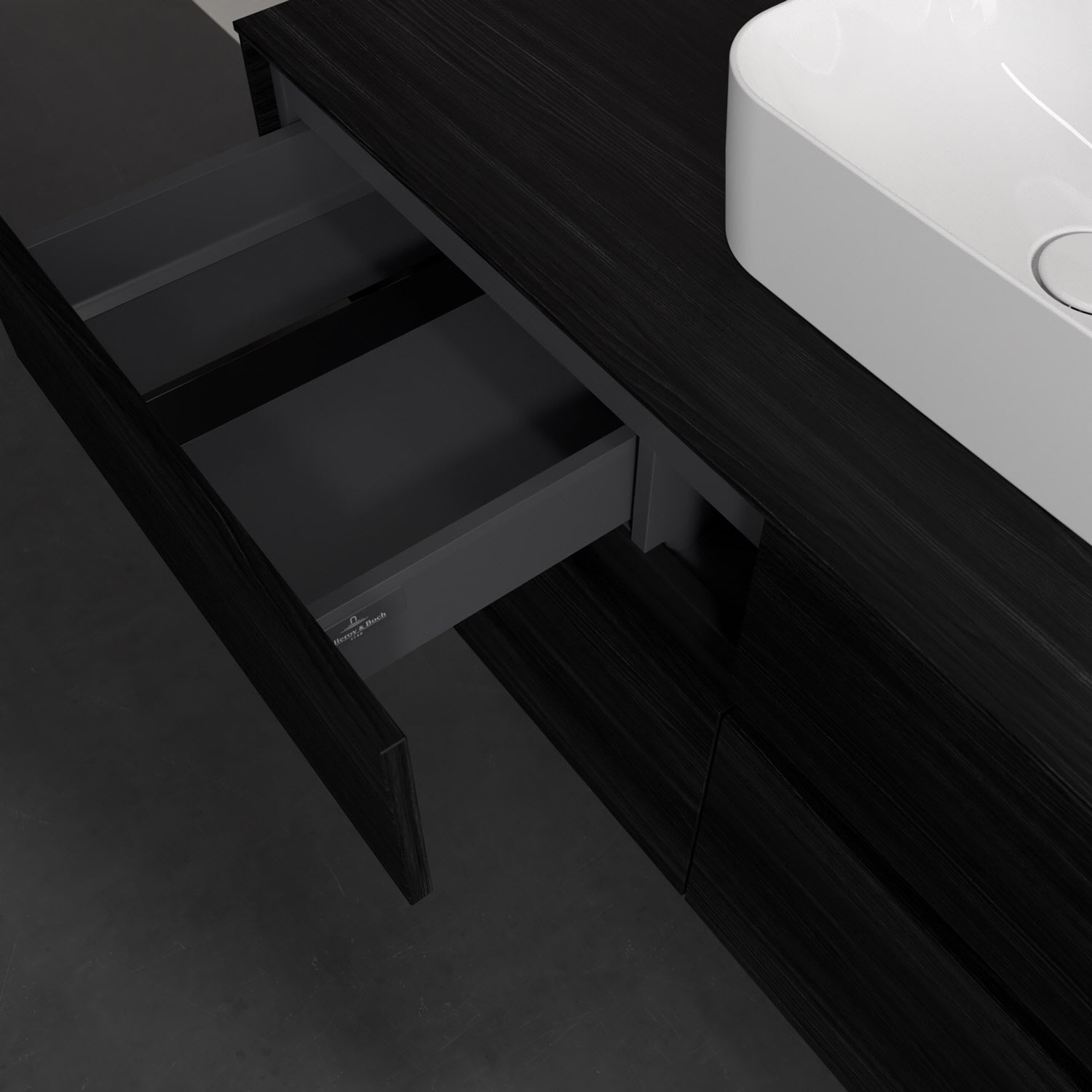Stauraumwunder im zeitgemäßen Design: Der Villeroy & Boch Waschbeckenunterschrank aus der Collaro Kollektion eignet sich besonders für Familienbäder und bietet genau den Platz, der dort benötigt wird. Eine integrierte Griffleiste sorgt für eine schlichte, moderne Front. Steuern lässt sich das Licht über einen Touch-Sensor seitlich am Unterschrank. Im Inneren bietet das Möbelstück mit vier Auszügen erstaunlich viel Komfort – ermöglicht durch großzügiges Platzangebot und den integrierten Antirutschboden. Variabel setzbare Glasabtrennungen und mitgelieferte Accessory Boxen sorgen für den nötigen Überblick. Dank SoftClosing und Selbsteinzug lassen sich die Auszüge nach der Nutzung lautlos schließen. Die Front ist mit einer hochwertigen Lackierung versehen, deren Anti-Fingerprint-Oberfläche unschönen Fingerabdrücken vorbeugt.