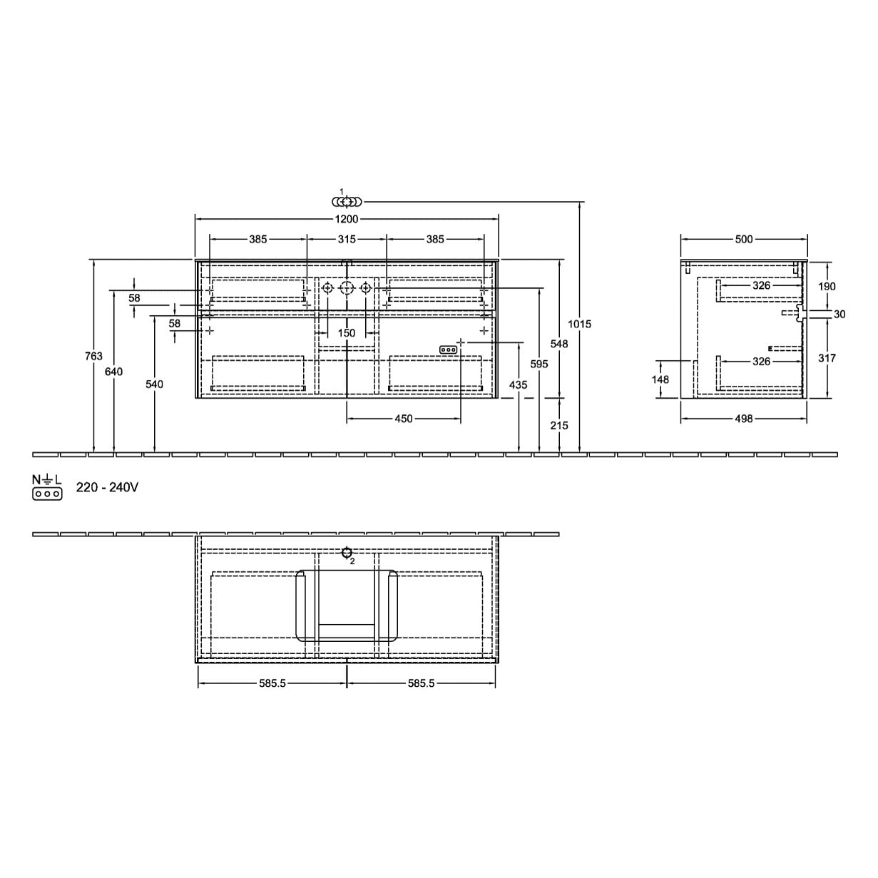 Villeroy & Boch Collaro Waschtischunterschrank 120 x 54,8 cm , mit LED-Beleuchtung, mit 4 Auszügen