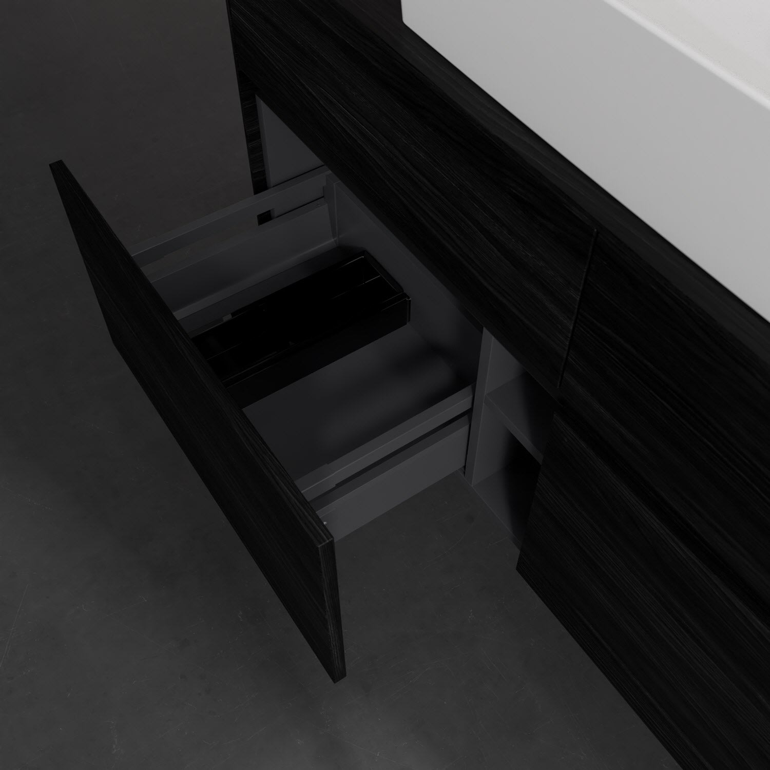 Stauraumwunder im zeitgemäßen Design: Der Villeroy & Boch Waschbeckenunterschrank aus der Collaro Kollektion eignet sich besonders für Familienbäder und bietet genau den Platz, der dort benötigt wird. Stimmungsvolles Highlight der schlichten, modernen Front ist die integrierte Griffmulde mit stufenlos einstellbarer LED-Beleuchtung. Im Inneren bietet das Möbelstück mit vier Auszügen erstaunlich viel Komfort – ermöglicht durch großzügiges Platzangebot und den integrierten Antirutschboden. Variabel setzbare Glasabtrennungen und mitgelieferte Accessory Boxen sorgen für den nötigen Überblick. Dank SoftClosing und Selbsteinzug lassen sich die Auszüge nach der Nutzung lautlos schließen. Die Front ist mit einer hochwertigen Lackierung versehen, deren Anti-Fingerprint-Oberfläche unschönen Fingerabdrücken vorbeugt.