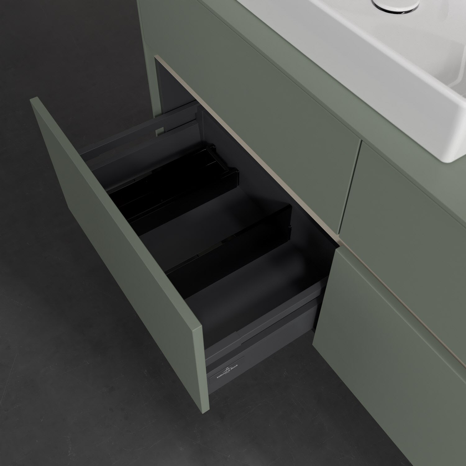 - kein Umfallen oder Verrutschen von Pflegeprodukten in den Schubladen dank rutschhemmendem Boden