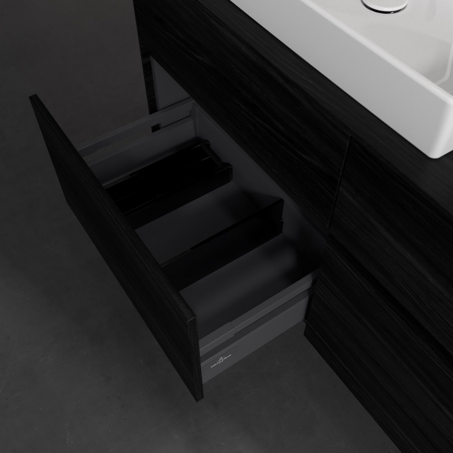 - kein Umfallen oder Verrutschen von Pflegeprodukten in den Schubladen dank rutschhemmendem Boden