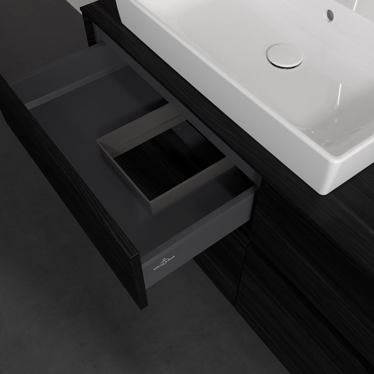 Stauraumwunder im zeitgemäßen Design: Der Villeroy & Boch Waschbeckenunterschrank aus der Collaro Kollektion eignet sich besonders für Familienbäder und bietet genau den Platz, der dort benötigt wird. Stimmungsvolles Highlight der schlichten, modernen Front ist die integrierte Griffmulde mit stufenlos einstellbarer LED-Beleuchtung. Im Inneren bietet das Möbelstück mit vier Auszügen erstaunlich viel Komfort – ermöglicht durch großzügiges Platzangebot und den integrierten Antirutschboden. Variabel setzbare Glasabtrennungen und mitgelieferte Accessory Boxen sorgen für den nötigen Überblick. Dank SoftClosing und Selbsteinzug lassen sich die Auszüge nach der Nutzung lautlos schließen. Die Front ist mit einer hochwertigen Lackierung versehen, deren Anti-Fingerprint-Oberfläche unschönen Fingerabdrücken vorbeugt.