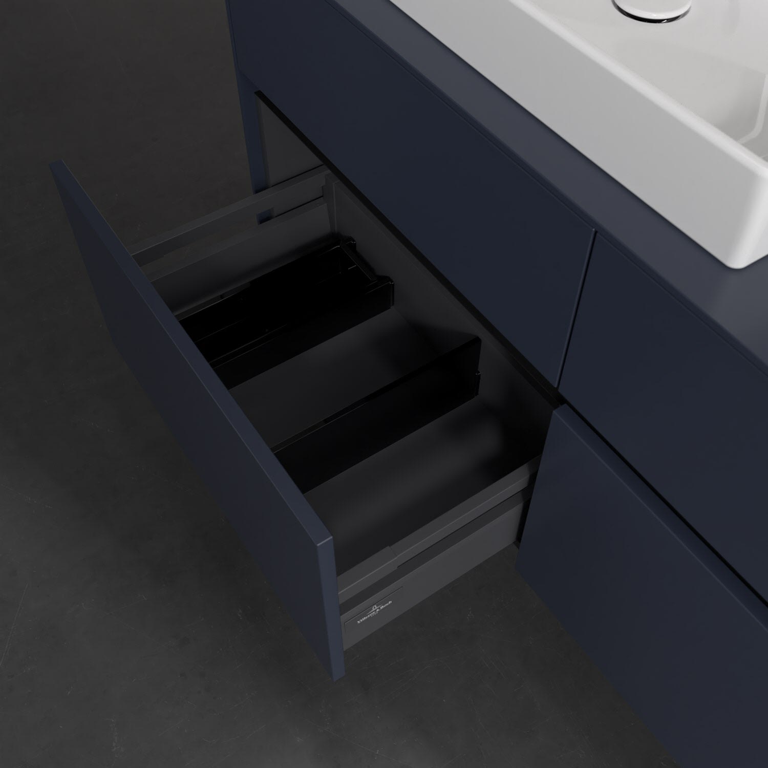 - kein Umfallen oder Verrutschen von Pflegeprodukten in den Schubladen dank rutschhemmendem Boden