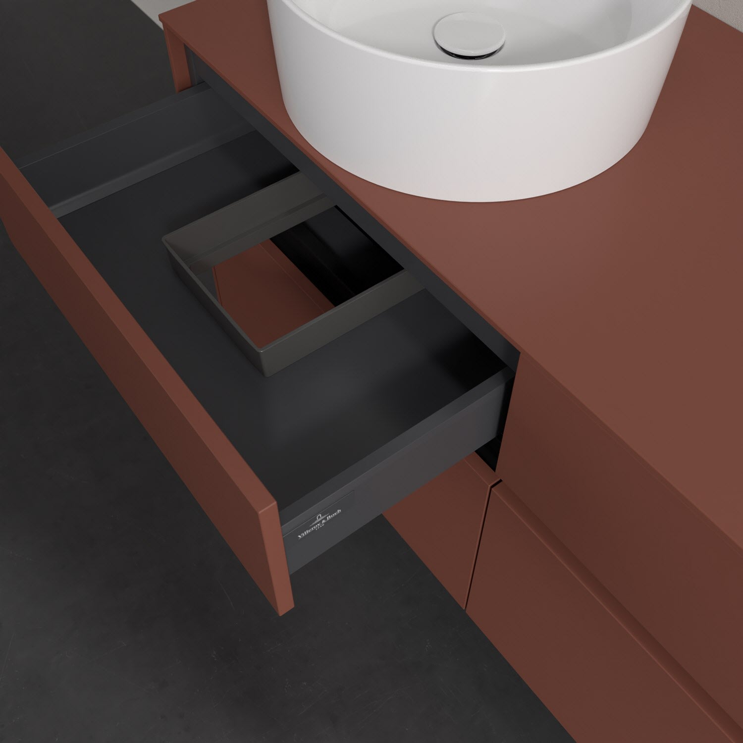 Stauraumwunder im zeitgemäßen Design: Der Villeroy & Boch Waschbeckenunterschrank aus der Collaro Kollektion eignet sich besonders für Familienbäder und bietet genau den Platz, der dort benötigt wird. Eine integrierte Griffleiste sorgt für eine schlichte, moderne Front. Im Inneren bietet das Möbelstück mit vier Auszügen erstaunlich viel Komfort – ermöglicht durch großzügiges Platzangebot und den integrierten Antirutschboden. Variabel setzbare Glasabtrennungen und mitgelieferte Accessory Boxen sorgen für den nötigen Überblick. Dank SoftClosing und Selbsteinzug lassen sich die Auszüge nach der Nutzung lautlos schließen. Die Front ist mit einer hochwertigen Lackierung versehen, deren Anti-Fingerprint-Oberfläche unschönen Fingerabdrücken vorbeugt.
