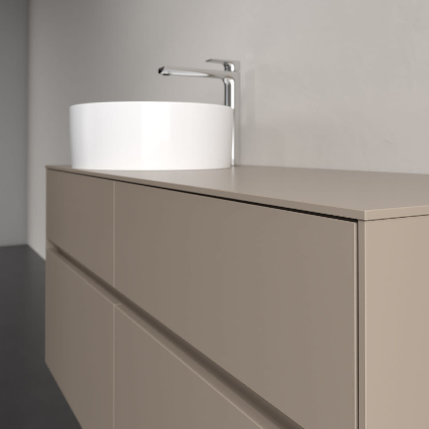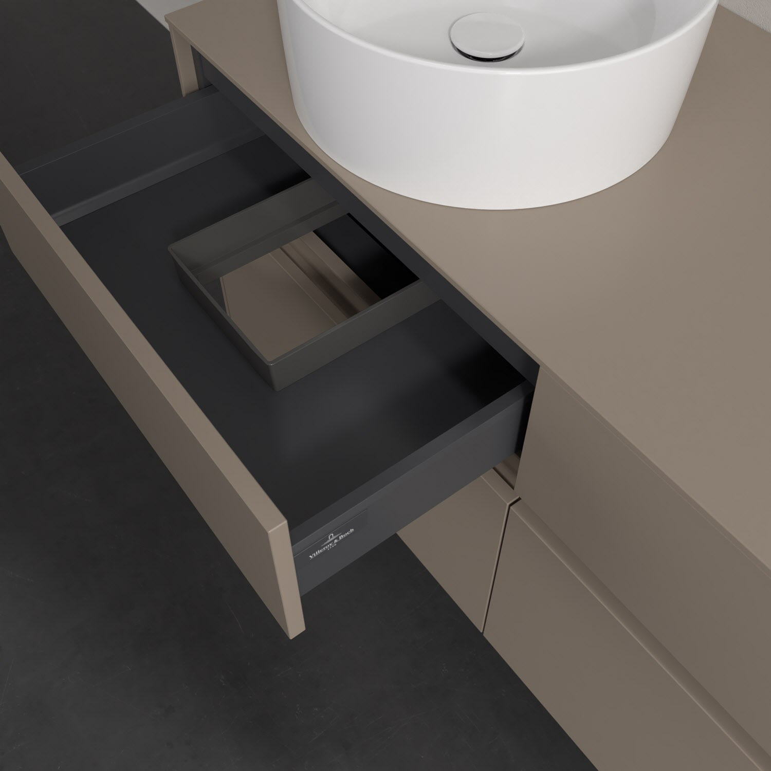 Stauraumwunder im zeitgemäßen Design: Der Villeroy & Boch Waschbeckenunterschrank aus der Collaro Kollektion eignet sich besonders für Familienbäder und bietet genau den Platz, der dort benötigt wird. Stimmungsvolles Highlight der schlichten, modernen Front ist die integrierte Griffmulde mit stufenlos einstellbarer LED-Beleuchtung. Steuern lässt sie sich über einen Touch-Sensor seitlich am Unterschrank. Im Inneren bietet das Möbelstück mit vier Auszügen erstaunlich viel Komfort – ermöglicht durch großzügiges Platzangebot und den integrierten Antirutschboden. Variabel setzbare Glasabtrennungen und mitgelieferte Accessory Boxen sorgen für den nötigen Überblick. Dank SoftClosing und Selbsteinzug lassen sich die Auszüge nach der Nutzung lautlos schließen. Die Front ist mit einer hochwertigen Lackierung versehen, deren Anti-Fingerprint-Oberfläche unschönen Fingerabdrücken vorbeugt.