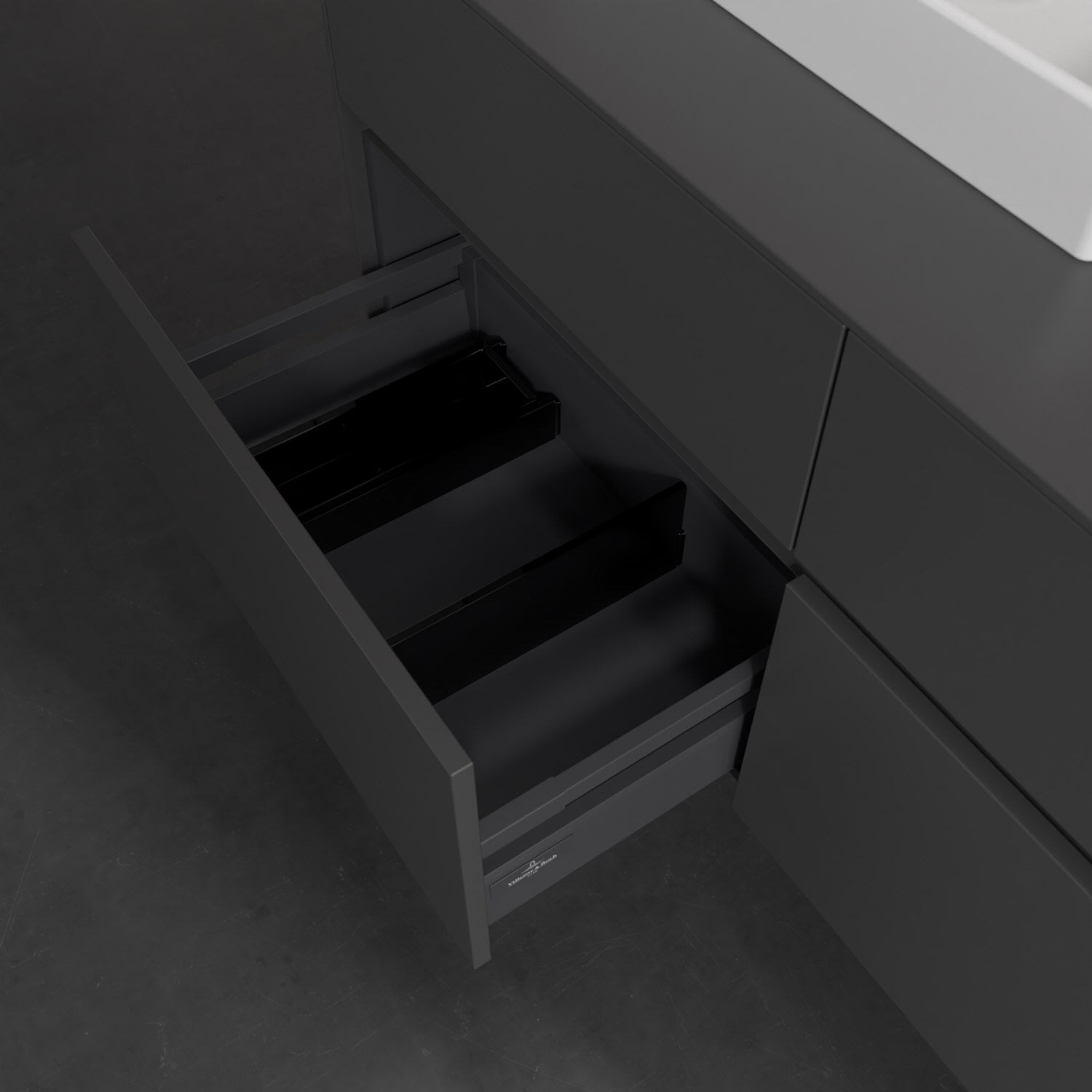 - kein Umfallen oder Verrutschen von Pflegeprodukten in den Schubladen dank rutschhemmendem Boden