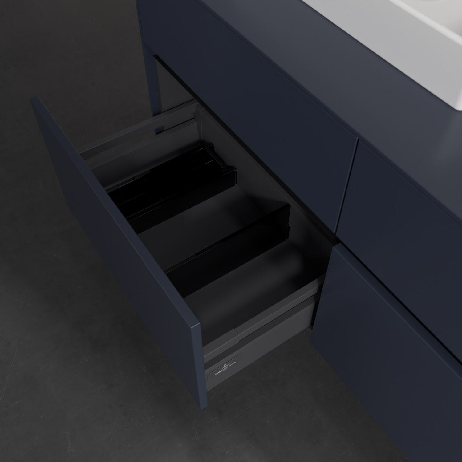 - kein Umfallen oder Verrutschen von Pflegeprodukten in den Schubladen dank rutschhemmendem Boden
