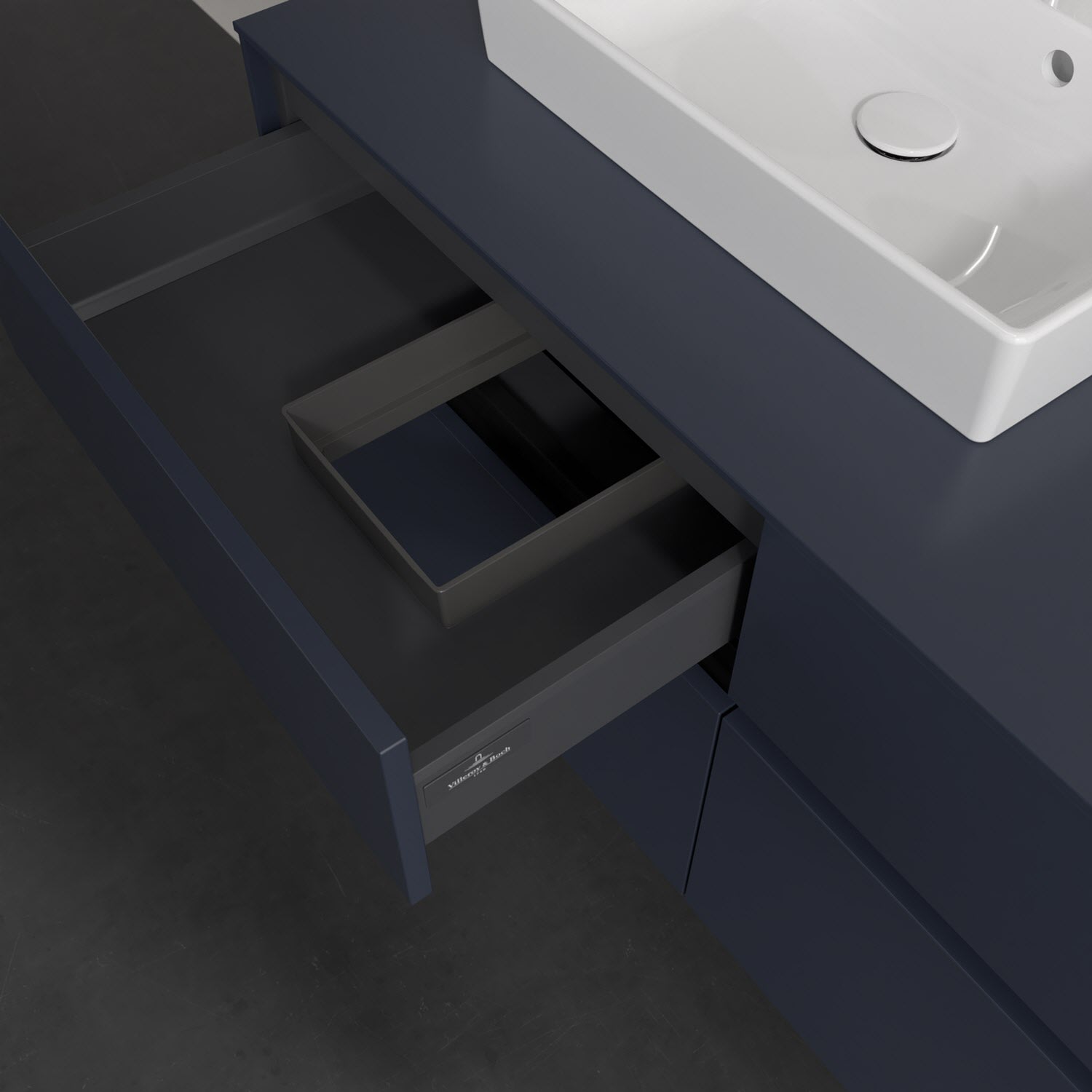 Stauraumwunder im zeitgemäßen Design: Der Villeroy & Boch Waschbeckenunterschrank aus der Collaro Kollektion eignet sich besonders für Familienbäder und bietet genau den Platz, der dort benötigt wird. Stimmungsvolles Highlight der schlichten, modernen Front ist die integrierte Griffmulde mit stufenlos einstellbarer LED-Beleuchtung. Im Inneren bietet das Möbelstück mit vier Auszügen erstaunlich viel Komfort – ermöglicht durch großzügiges Platzangebot und den integrierten Antirutschboden. Variabel setzbare Glasabtrennungen und mitgelieferte Accessory Boxen sorgen für den nötigen Überblick. Dank SoftClosing und Selbsteinzug lassen sich die Auszüge nach der Nutzung lautlos schließen. Die Front ist mit einer hochwertigen Lackierung versehen, deren Anti-Fingerprint-Oberfläche unschönen Fingerabdrücken vorbeugt.