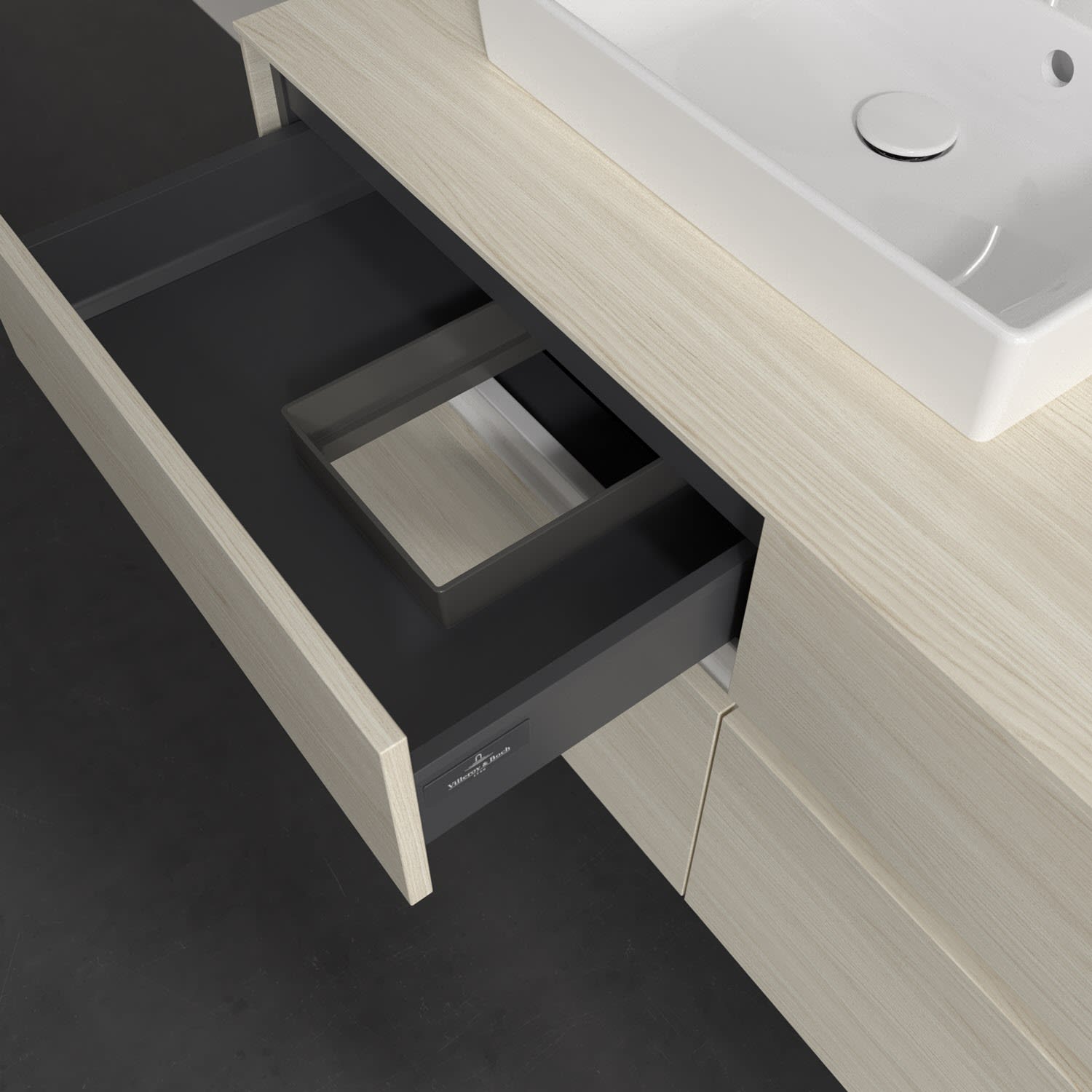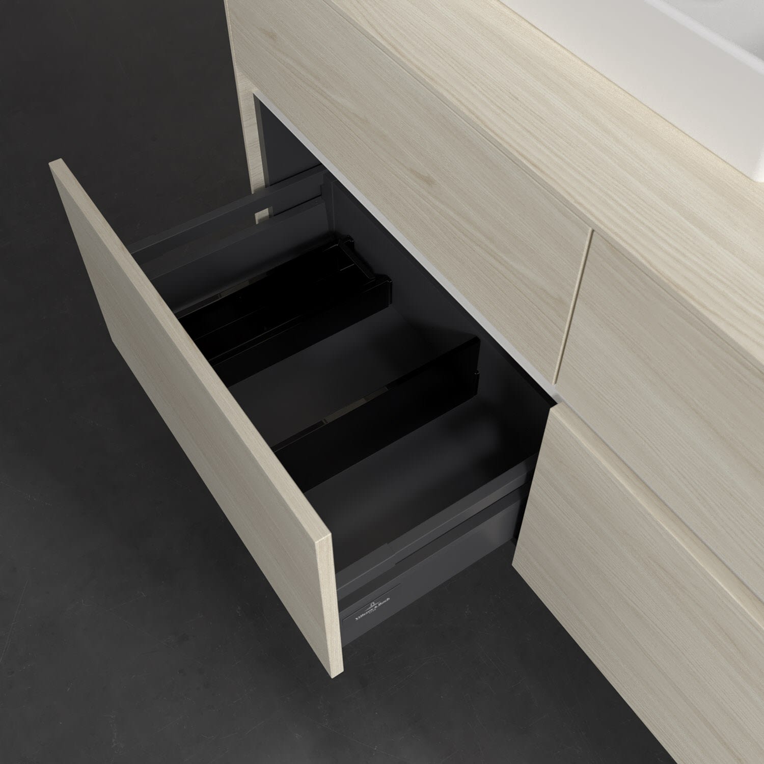 - kein Umfallen oder Verrutschen von Pflegeprodukten in den Schubladen dank rutschhemmendem Boden
