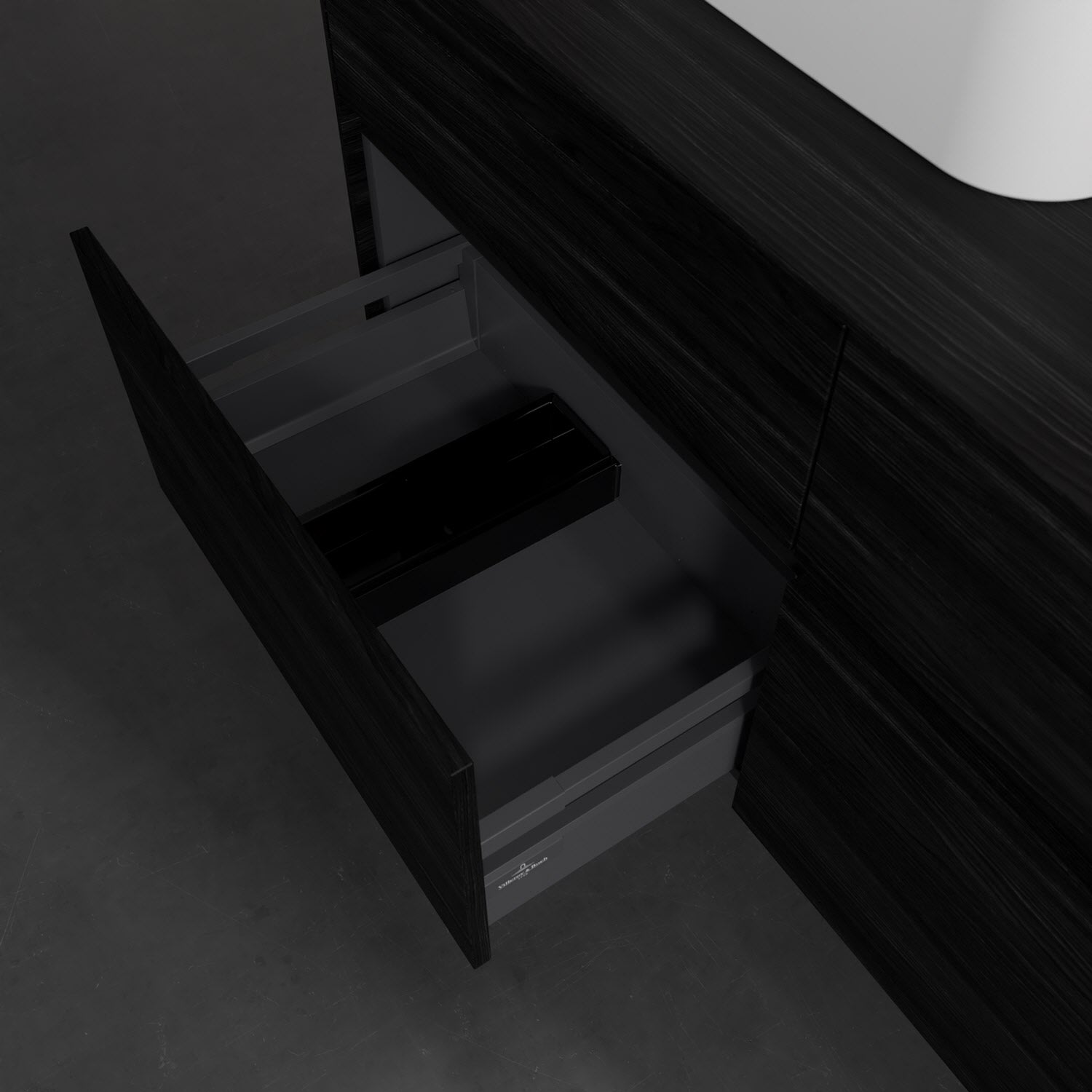Stauraumwunder im zeitgemäßen Design: Der Villeroy & Boch Waschbeckenunterschrank aus der Collaro Kollektion eignet sich besonders für Familienbäder und bietet genau den Platz, der dort benötigt wird. Stimmungsvolles Highlight der schlichten, modernen Front ist die integrierte Griffmulde mit stufenlos einstellbarer LED-Beleuchtung. Im Inneren bietet das Möbelstück mit vier Auszügen erstaunlich viel Komfort – ermöglicht durch großzügiges Platzangebot und den integrierten Antirutschboden. Variabel setzbare Glasabtrennungen und mitgelieferte Accessory Boxen sorgen für den nötigen Überblick. Dank SoftClosing und Selbsteinzug lassen sich die Auszüge nach der Nutzung lautlos schließen. Die Front ist mit einer hochwertigen Lackierung versehen, deren Anti-Fingerprint-Oberfläche unschönen Fingerabdrücken vorbeugt.
