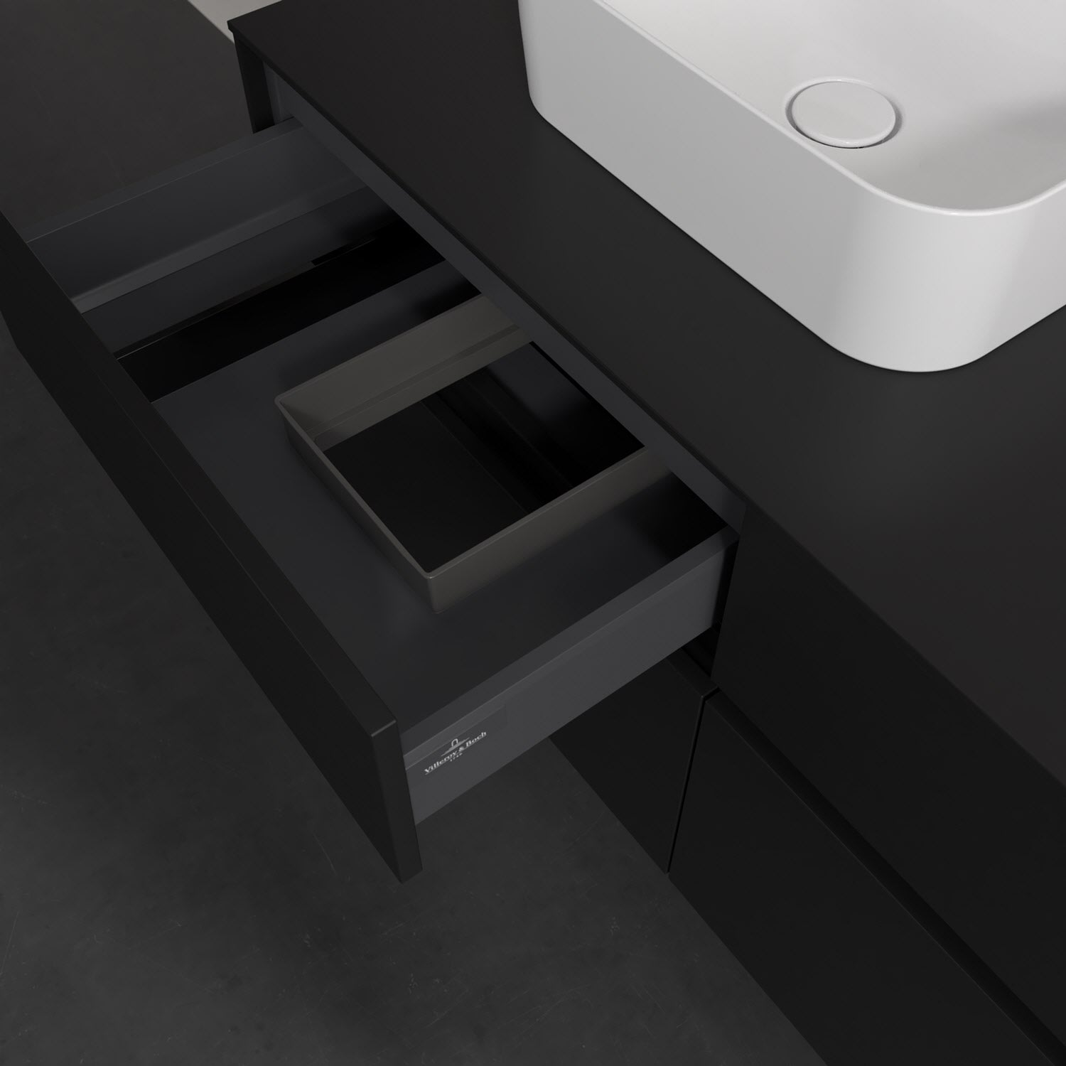 Stauraumwunder im zeitgemäßen Design: Der Villeroy & Boch Waschbeckenunterschrank aus der Collaro Kollektion eignet sich besonders für Familienbäder und bietet genau den Platz, der dort benötigt wird. Eine integrierte Griffleiste sorgt für eine schlichte, moderne Front. Steuern lässt sich das Licht über einen Touch-Sensor seitlich am Unterschrank. Im Inneren bietet das Möbelstück mit vier Auszügen erstaunlich viel Komfort – ermöglicht durch großzügiges Platzangebot und den integrierten Antirutschboden. Variabel setzbare Glasabtrennungen und mitgelieferte Accessory Boxen sorgen für den nötigen Überblick. Dank SoftClosing und Selbsteinzug lassen sich die Auszüge nach der Nutzung lautlos schließen. Die Front ist mit einer hochwertigen Lackierung versehen, deren Anti-Fingerprint-Oberfläche unschönen Fingerabdrücken vorbeugt.