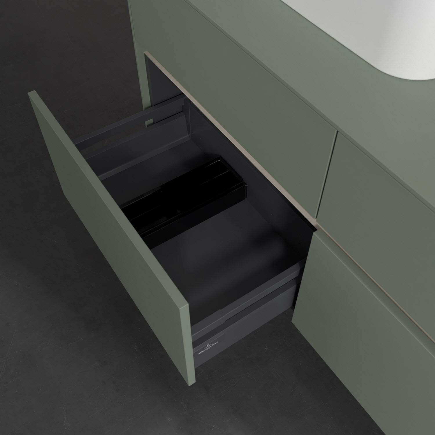 Stauraumwunder im zeitgemäßen Design: Der Villeroy & Boch Waschbeckenunterschrank aus der Collaro Kollektion eignet sich besonders für Familienbäder und bietet genau den Platz, der dort benötigt wird. Eine integrierte Griffleiste sorgt für eine schlichte, moderne Front. Steuern lässt sich das Licht über einen Touch-Sensor seitlich am Unterschrank. Im Inneren bietet das Möbelstück mit vier Auszügen erstaunlich viel Komfort – ermöglicht durch großzügiges Platzangebot und den integrierten Antirutschboden. Variabel setzbare Glasabtrennungen und mitgelieferte Accessory Boxen sorgen für den nötigen Überblick. Dank SoftClosing und Selbsteinzug lassen sich die Auszüge nach der Nutzung lautlos schließen. Die Front ist mit einer hochwertigen Lackierung versehen, deren Anti-Fingerprint-Oberfläche unschönen Fingerabdrücken vorbeugt.