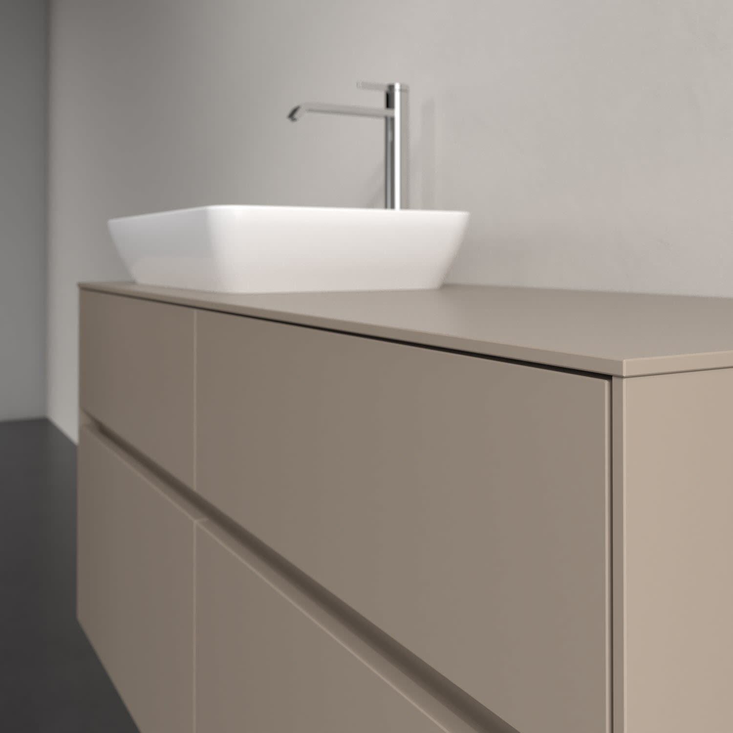 Stauraumwunder im zeitgemäßen Design: Der Villeroy & Boch Waschbeckenunterschrank aus der Collaro Kollektion eignet sich besonders für Familienbäder und bietet genau den Platz, der dort benötigt wird. Stimmungsvolles Highlight der schlichten, modernen Front ist die integrierte Griffmulde mit stufenlos einstellbarer LED-Beleuchtung. Im Inneren bietet das Möbelstück mit vier Auszügen erstaunlich viel Komfort – ermöglicht durch großzügiges Platzangebot und den integrierten Antirutschboden. Variabel setzbare Glasabtrennungen und mitgelieferte Accessory Boxen sorgen für den nötigen Überblick. Dank SoftClosing und Selbsteinzug lassen sich die Auszüge nach der Nutzung lautlos schließen. Die Front ist mit einer hochwertigen Lackierung versehen, deren Anti-Fingerprint-Oberfläche unschönen Fingerabdrücken vorbeugt.