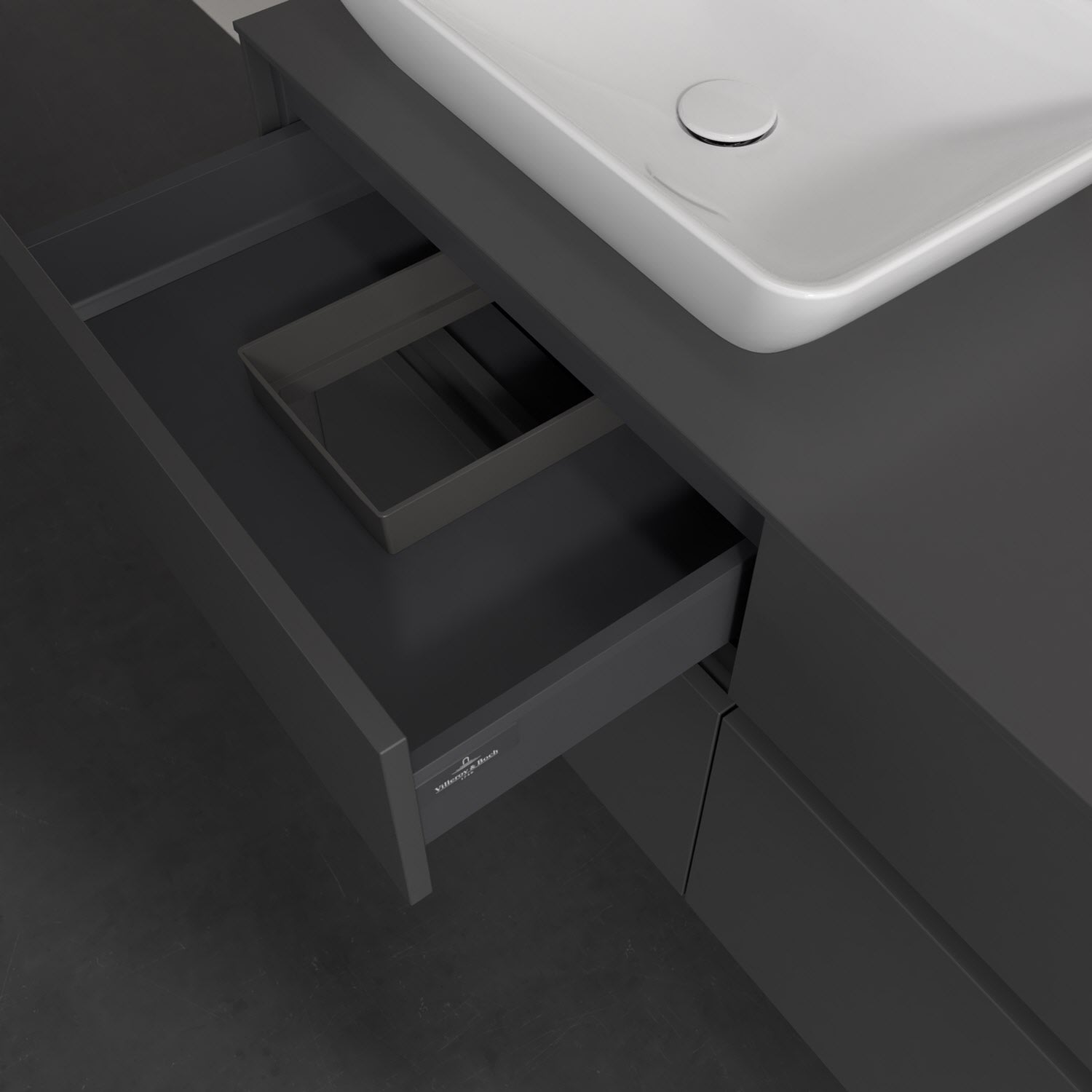 Stauraumwunder im zeitgemäßen Design: Der Villeroy & Boch Waschbeckenunterschrank aus der Collaro Kollektion eignet sich besonders für Familienbäder und bietet genau den Platz, der dort benötigt wird. Stimmungsvolles Highlight der schlichten, modernen Front ist die integrierte Griffmulde mit stufenlos einstellbarer LED-Beleuchtung. Im Inneren bietet das Möbelstück mit vier Auszügen erstaunlich viel Komfort – ermöglicht durch großzügiges Platzangebot und den integrierten Antirutschboden. Variabel setzbare Glasabtrennungen und mitgelieferte Accessory Boxen sorgen für den nötigen Überblick. Dank SoftClosing und Selbsteinzug lassen sich die Auszüge nach der Nutzung lautlos schließen. Die Front ist mit einer hochwertigen Lackierung versehen, deren Anti-Fingerprint-Oberfläche unschönen Fingerabdrücken vorbeugt.