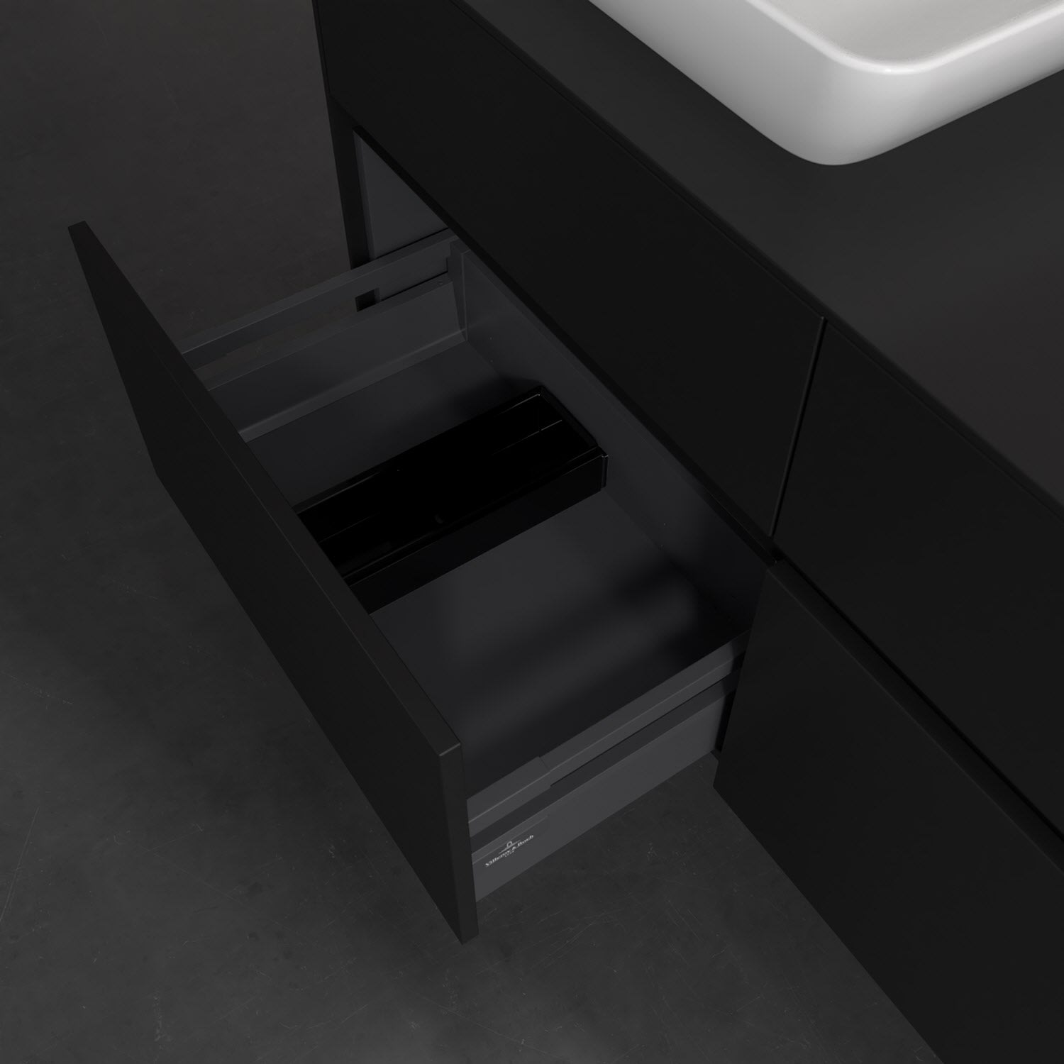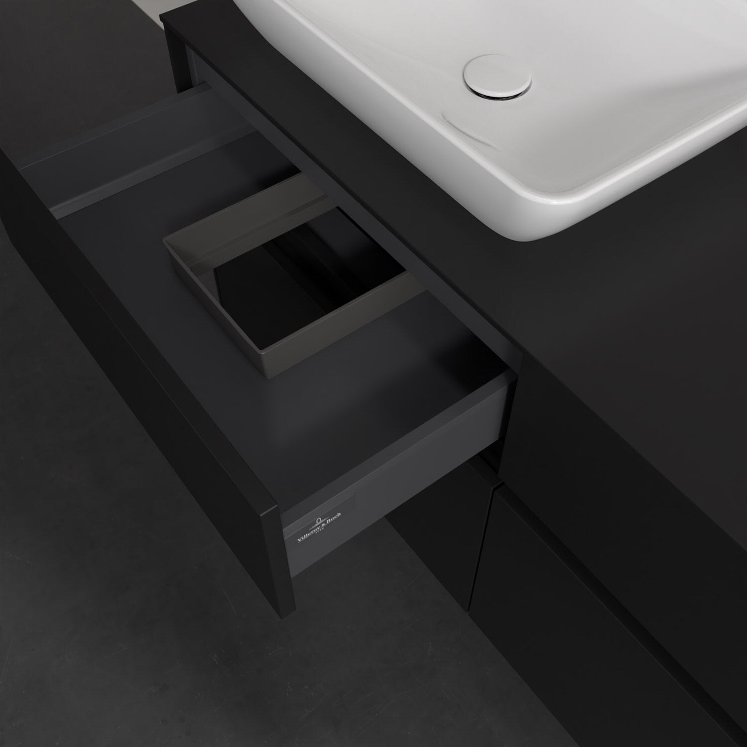 Stauraumwunder im zeitgemäßen Design: Der Villeroy & Boch Waschbeckenunterschrank aus der Collaro Kollektion eignet sich besonders für Familienbäder und bietet genau den Platz, der dort benötigt wird. Eine integrierte Griffleiste sorgt für eine schlichte, moderne Front. Steuern lässt sich das Licht über einen Touch-Sensor seitlich am Unterschrank. Im Inneren bietet das Möbelstück mit vier Auszügen erstaunlich viel Komfort – ermöglicht durch großzügiges Platzangebot und den integrierten Antirutschboden. Variabel setzbare Glasabtrennungen und mitgelieferte Accessory Boxen sorgen für den nötigen Überblick. Dank SoftClosing und Selbsteinzug lassen sich die Auszüge nach der Nutzung lautlos schließen. Die Front ist mit einer hochwertigen Lackierung versehen, deren Anti-Fingerprint-Oberfläche unschönen Fingerabdrücken vorbeugt.