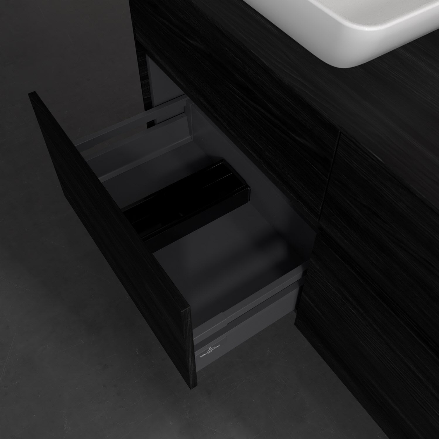 Stauraumwunder im zeitgemäßen Design: Der Villeroy & Boch Waschbeckenunterschrank aus der Collaro Kollektion eignet sich besonders für Familienbäder und bietet genau den Platz, der dort benötigt wird. Eine integrierte Griffleiste sorgt für eine schlichte, moderne Front. Steuern lässt sich das Licht über einen Touch-Sensor seitlich am Unterschrank. Im Inneren bietet das Möbelstück mit vier Auszügen erstaunlich viel Komfort – ermöglicht durch großzügiges Platzangebot und den integrierten Antirutschboden. Variabel setzbare Glasabtrennungen und mitgelieferte Accessory Boxen sorgen für den nötigen Überblick. Dank SoftClosing und Selbsteinzug lassen sich die Auszüge nach der Nutzung lautlos schließen. Die Front ist mit einer hochwertigen Lackierung versehen, deren Anti-Fingerprint-Oberfläche unschönen Fingerabdrücken vorbeugt.