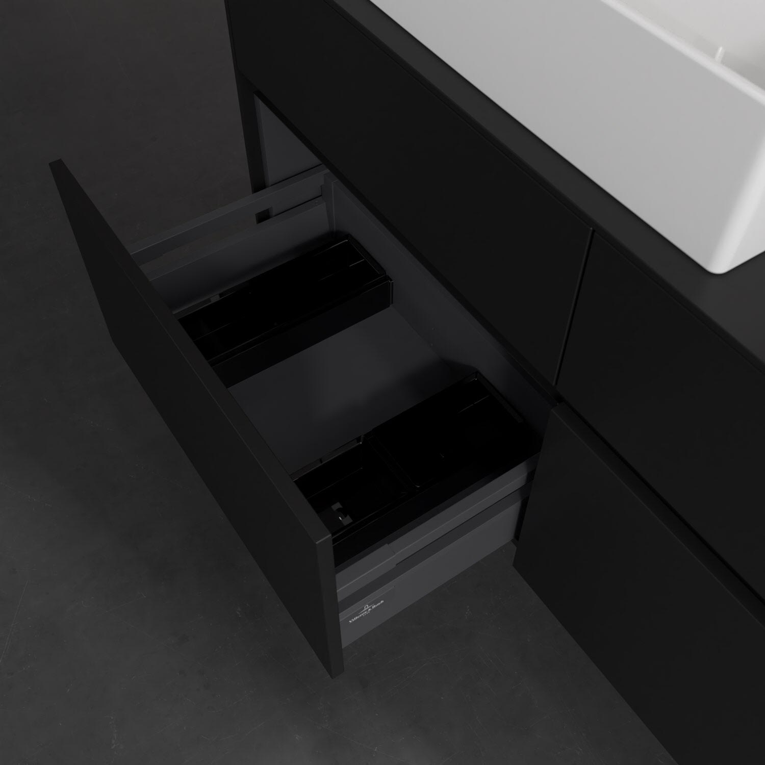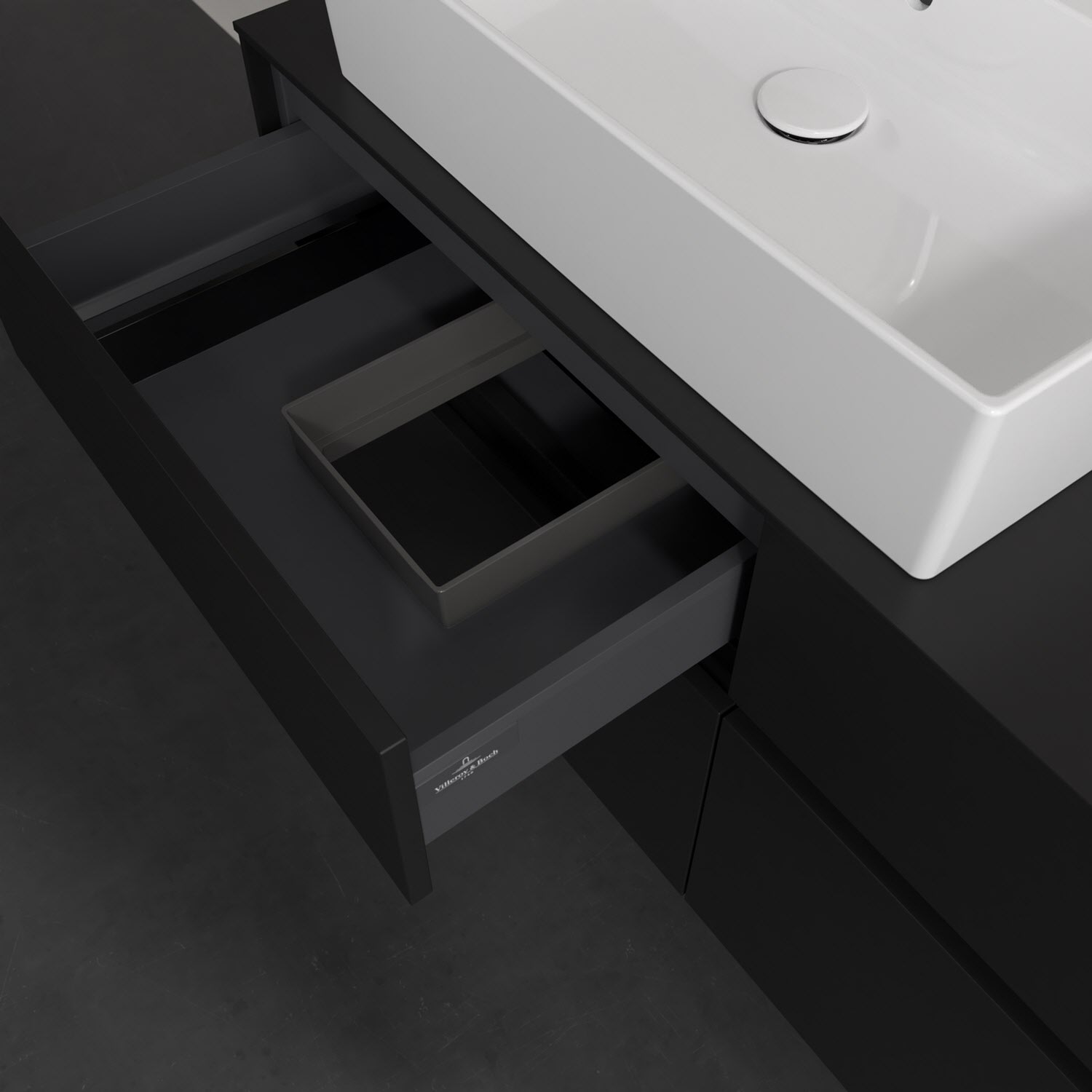 Stauraumwunder im zeitgemäßen Design: Der Villeroy & Boch Waschbeckenunterschrank aus der Collaro Kollektion eignet sich besonders für Familienbäder und bietet genau den Platz, der dort benötigt wird. Eine integrierte Griffleiste sorgt für eine schlichte, moderne Front. Steuern lässt sich das Licht über einen Touch-Sensor seitlich am Unterschrank. Im Inneren bietet das Möbelstück mit vier Auszügen erstaunlich viel Komfort – ermöglicht durch großzügiges Platzangebot und den integrierten Antirutschboden. Variabel setzbare Glasabtrennungen und mitgelieferte Accessory Boxen sorgen für den nötigen Überblick. Dank SoftClosing und Selbsteinzug lassen sich die Auszüge nach der Nutzung lautlos schließen. Die Front ist mit einer hochwertigen Lackierung versehen, deren Anti-Fingerprint-Oberfläche unschönen Fingerabdrücken vorbeugt.