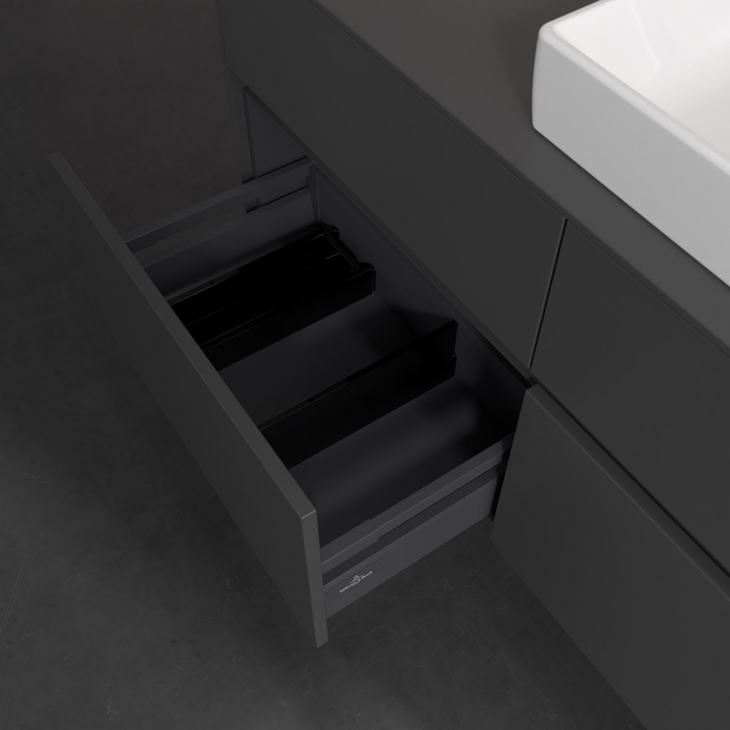 - kein Umfallen oder Verrutschen von Pflegeprodukten in den Schubladen dank rutschhemmendem Boden