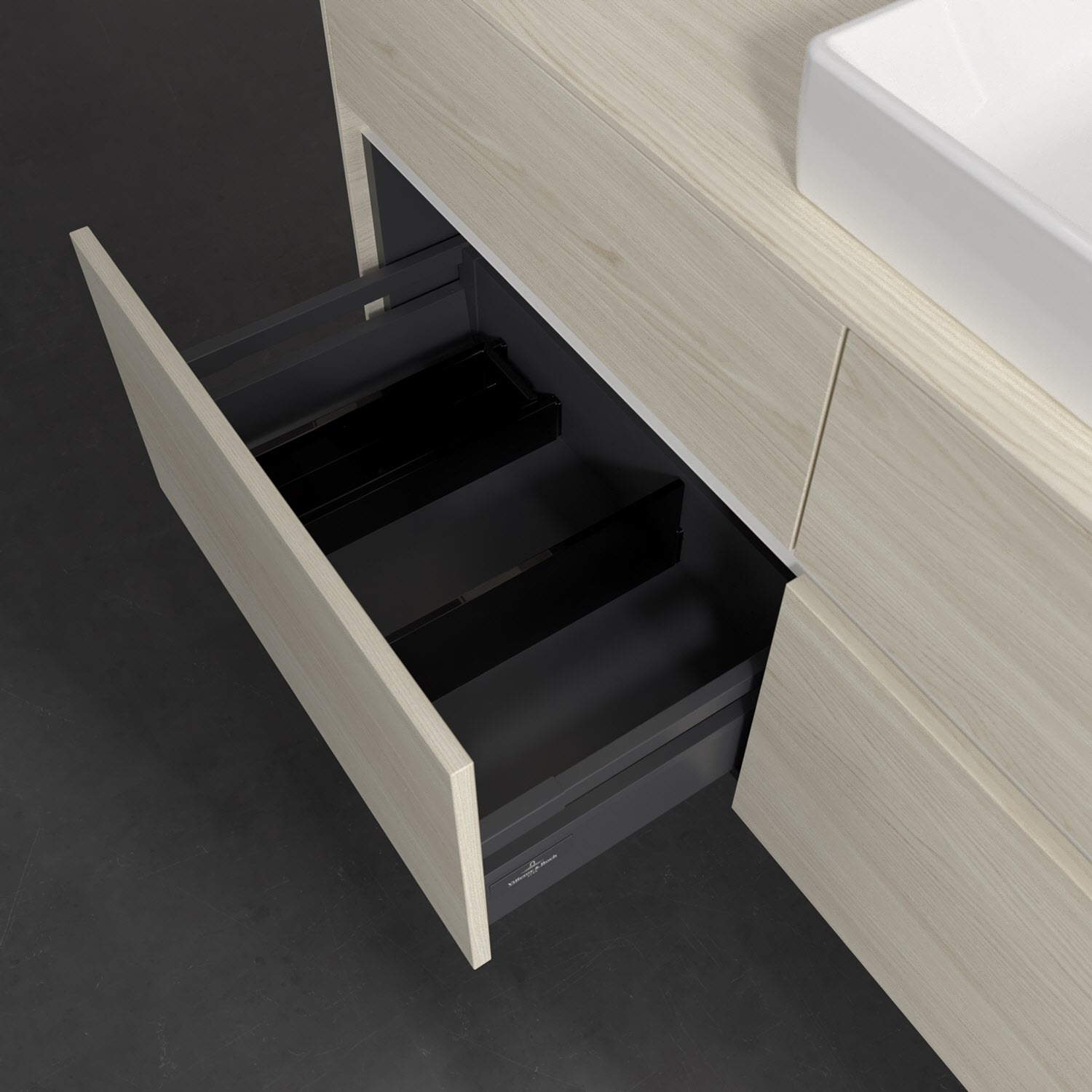 - kein Umfallen oder Verrutschen von Pflegeprodukten in den Schubladen dank rutschhemmendem Boden