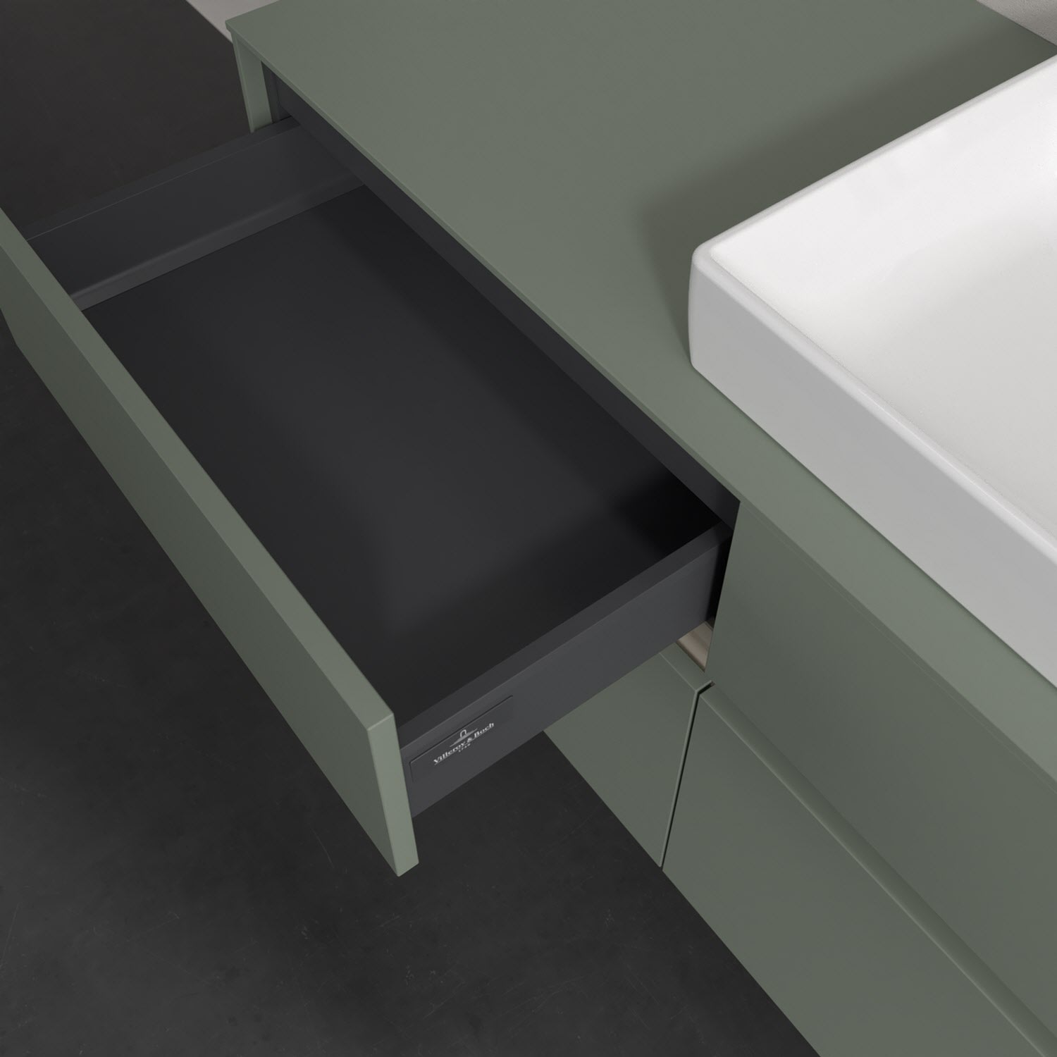 Stauraumwunder im zeitgemäßen Design: Der Villeroy & Boch Waschbeckenunterschrank aus der Collaro Kollektion eignet sich besonders für Familienbäder und bietet genau den Platz, der dort benötigt wird. Stimmungsvolles Highlight der schlichten, modernen Front ist die integrierte Griffmulde mit stufenlos einstellbarer LED-Beleuchtung. Im Inneren bietet das Möbelstück mit vier Auszügen erstaunlich viel Komfort – ermöglicht durch großzügiges Platzangebot und den integrierten Antirutschboden. Variabel setzbare Glasabtrennungen und mitgelieferte Accessory Boxen sorgen für den nötigen Überblick. Dank SoftClosing und Selbsteinzug lassen sich die Auszüge nach der Nutzung lautlos schließen. Die Front ist mit einer hochwertigen Lackierung versehen, deren Anti-Fingerprint-Oberfläche unschönen Fingerabdrücken vorbeugt.