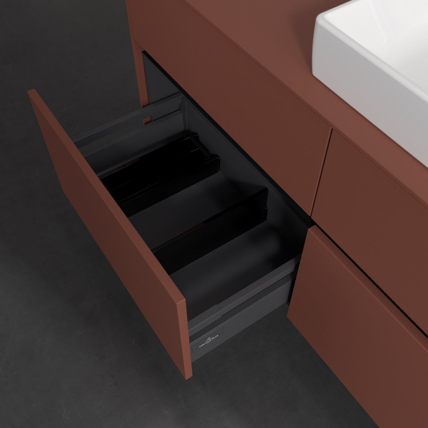 - kein Umfallen oder Verrutschen von Pflegeprodukten in den Schubladen dank rutschhemmendem Boden