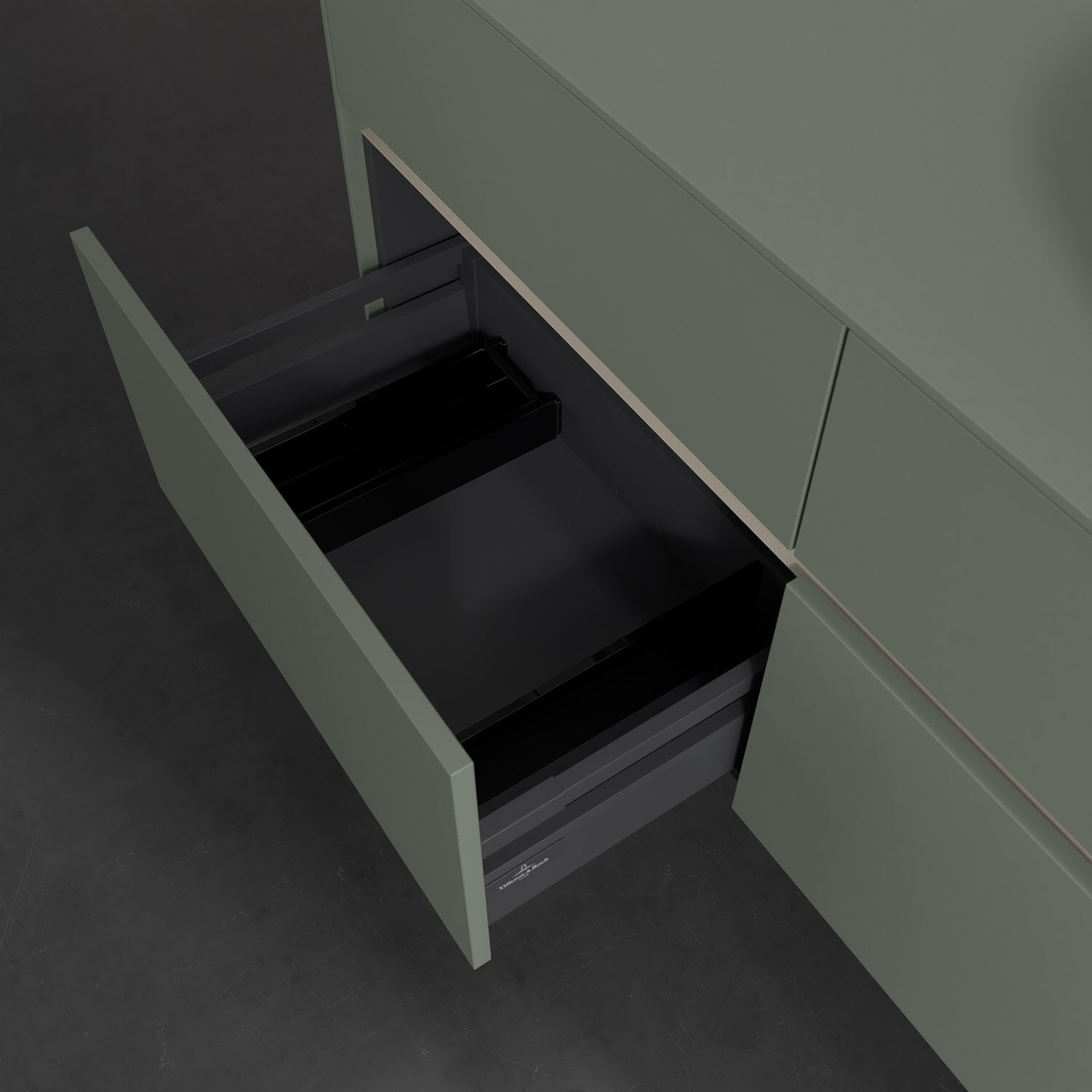 Stauraumwunder im zeitgemäßen Design: Der Villeroy & Boch Waschbeckenunterschrank aus der Collaro Kollektion eignet sich besonders für Familienbäder und bietet genau den Platz, der dort benötigt wird. Eine integrierte Griffleiste sorgt für eine schlichte, moderne Front. Im Inneren bietet das Möbelstück mit vier Auszügen erstaunlich viel Komfort – ermöglicht durch großzügiges Platzangebot und den integrierten Antirutschboden. Variabel setzbare Glasabtrennungen und mitgelieferte Accessory Boxen sorgen für den nötigen Überblick. Dank SoftClosing und Selbsteinzug lassen sich die Auszüge nach der Nutzung lautlos schließen. Die Front ist mit einer hochwertigen Lackierung versehen, deren Anti-Fingerprint-Oberfläche unschönen Fingerabdrücken vorbeugt.