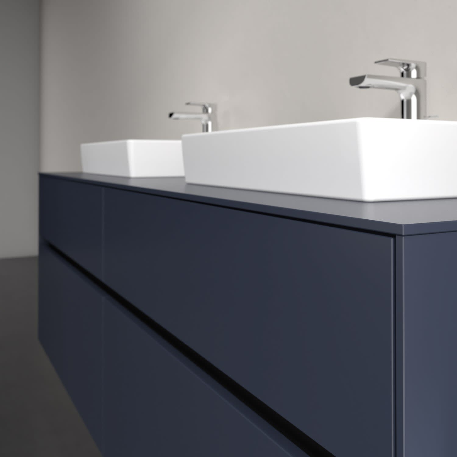 Stauraumwunder im zeitgemäßen Design: Der Villeroy & Boch Waschbeckenunterschrank aus der Collaro Kollektion eignet sich besonders für Familienbäder und bietet genau den Platz, der dort benötigt wird. Stimmungsvolles Highlight der schlichten, modernen Front ist die integrierte Griffmulde mit stufenlos einstellbarer LED-Beleuchtung. Steuern lässt sie sich über einen Touch-Sensor seitlich am Unterschrank. Im Inneren bietet das Möbelstück mit vier Auszügen erstaunlich viel Komfort – ermöglicht durch großzügiges Platzangebot und den integrierten Antirutschboden. Variabel setzbare Glasabtrennungen und mitgelieferte Accessory Boxen sorgen für den nötigen Überblick. Dank SoftClosing und Selbsteinzug lassen sich die Auszüge nach der Nutzung lautlos schließen. Die Front ist mit einer hochwertigen Lackierung versehen, deren Anti-Fingerprint-Oberfläche unschönen Fingerabdrücken vorbeugt.