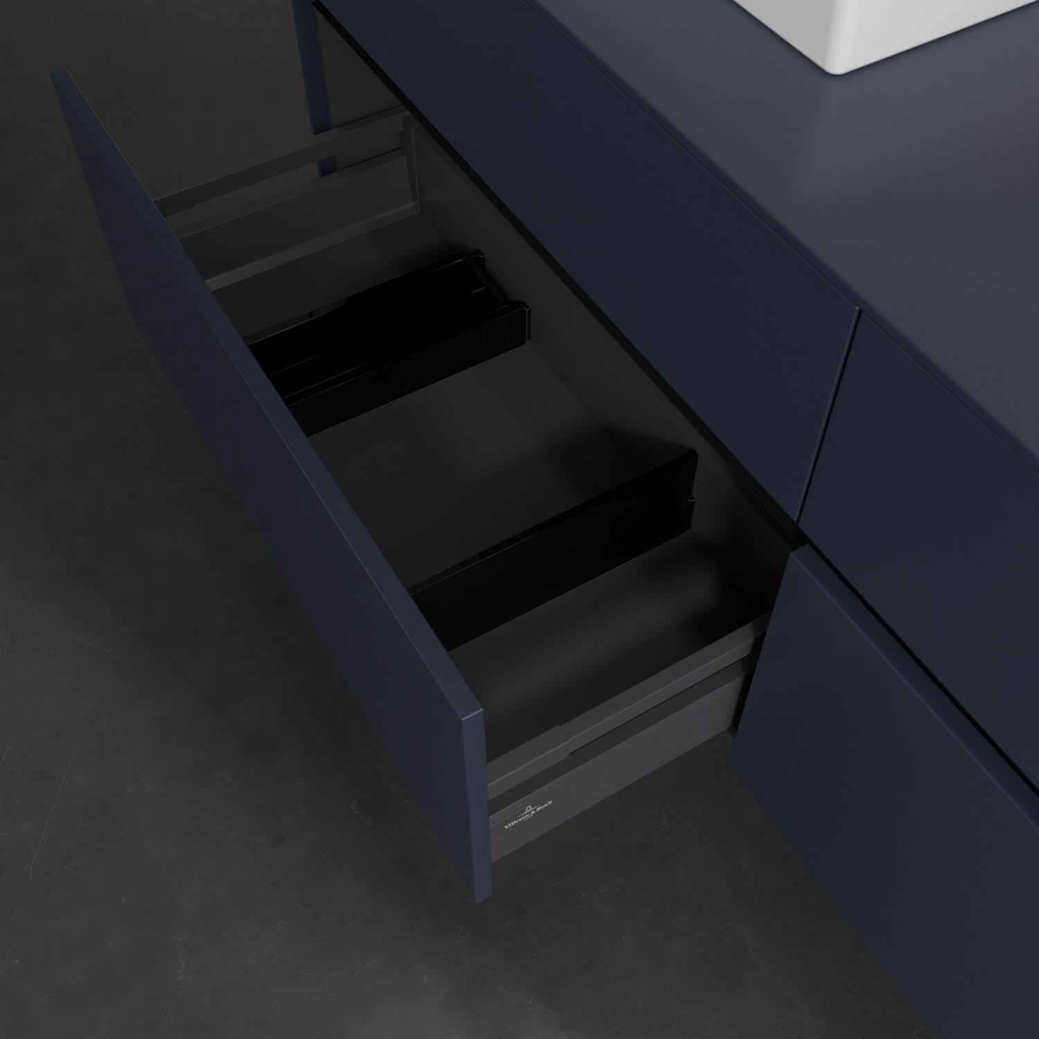 - kein Umfallen oder Verrutschen von Pflegeprodukten in den Schubladen dank rutschhemmendem Boden