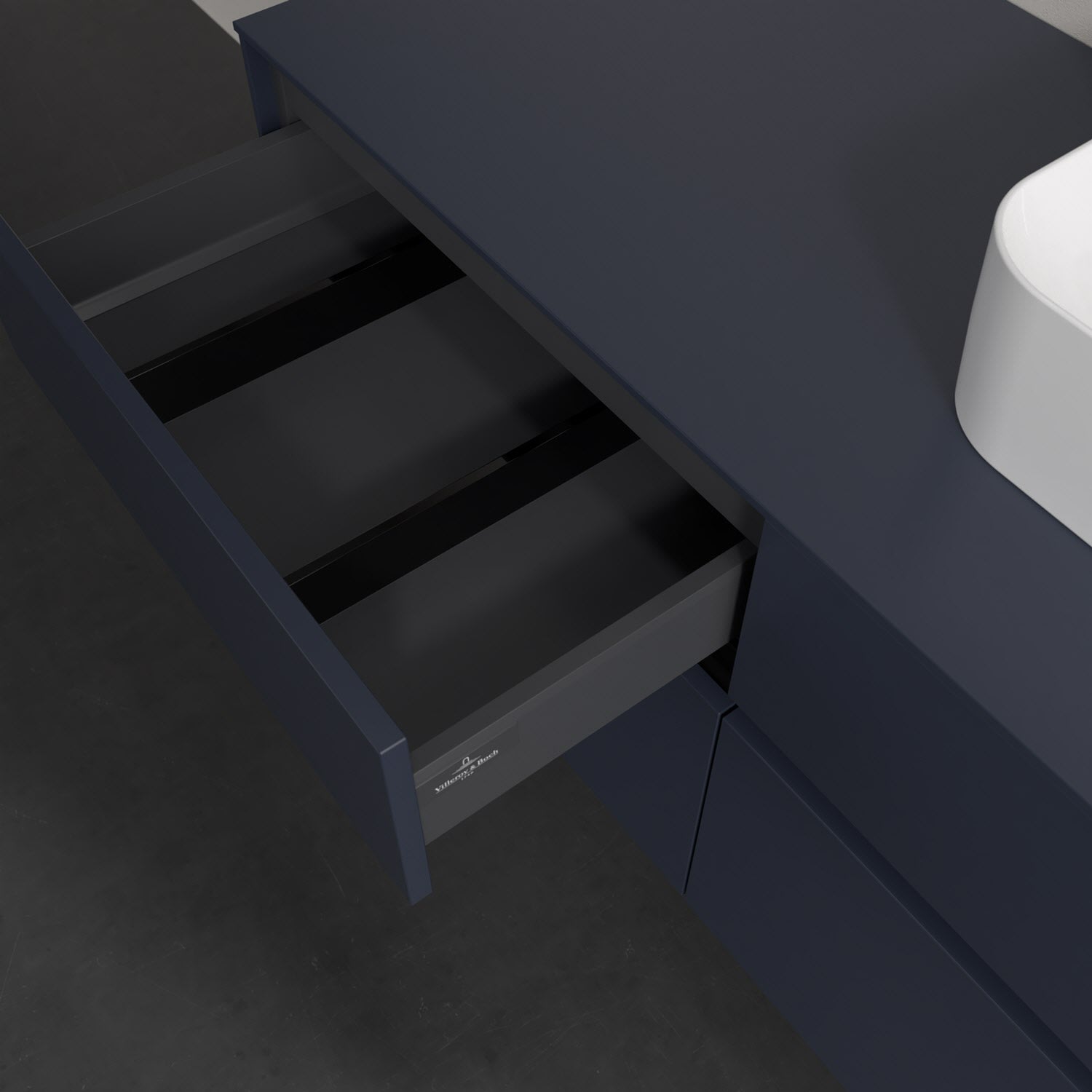 Stauraumwunder im zeitgemäßen Design: Der Villeroy & Boch Waschbeckenunterschrank aus der Collaro Kollektion eignet sich besonders für Familienbäder und bietet genau den Platz, der dort benötigt wird. Stimmungsvolles Highlight der schlichten, modernen Front ist die integrierte Griffmulde mit stufenlos einstellbarer LED-Beleuchtung. Im Inneren bietet das Möbelstück mit vier Auszügen erstaunlich viel Komfort – ermöglicht durch großzügiges Platzangebot und den integrierten Antirutschboden. Variabel setzbare Glasabtrennungen und mitgelieferte Accessory Boxen sorgen für den nötigen Überblick. Dank SoftClosing und Selbsteinzug lassen sich die Auszüge nach der Nutzung lautlos schließen. Die Front ist mit einer hochwertigen Lackierung versehen, deren Anti-Fingerprint-Oberfläche unschönen Fingerabdrücken vorbeugt.
