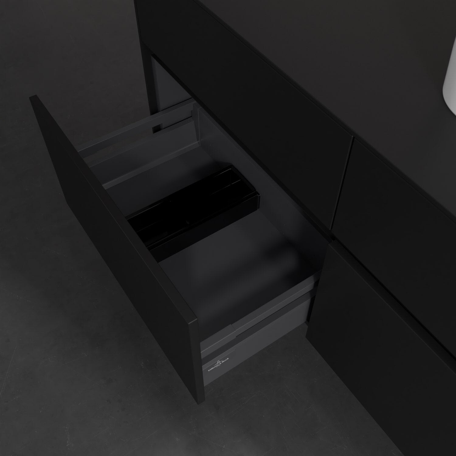 Stauraumwunder im zeitgemäßen Design: Der Villeroy & Boch Waschbeckenunterschrank aus der Collaro Kollektion eignet sich besonders für Familienbäder und bietet genau den Platz, der dort benötigt wird. Eine integrierte Griffleiste sorgt für eine schlichte, moderne Front. Steuern lässt sich das Licht über einen Touch-Sensor seitlich am Unterschrank. Im Inneren bietet das Möbelstück mit vier Auszügen erstaunlich viel Komfort – ermöglicht durch großzügiges Platzangebot und den integrierten Antirutschboden. Variabel setzbare Glasabtrennungen und mitgelieferte Accessory Boxen sorgen für den nötigen Überblick. Dank SoftClosing und Selbsteinzug lassen sich die Auszüge nach der Nutzung lautlos schließen. Die Front ist mit einer hochwertigen Lackierung versehen, deren Anti-Fingerprint-Oberfläche unschönen Fingerabdrücken vorbeugt.